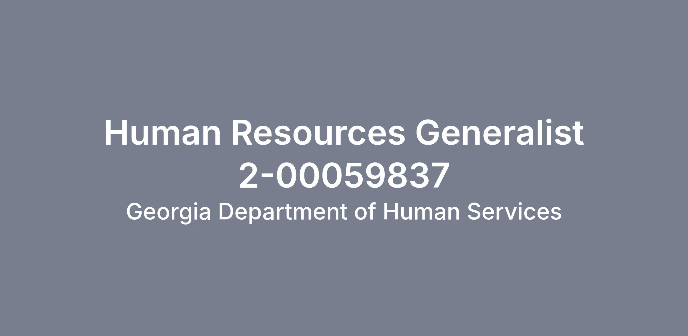 Start your career in public service. The Georgia Department of Human Services (DHS), Office of Human Resources (OHR) is seeking candidates for the position of Human Resources Generalist 2. This position is located in Augusta, Richmond County, Georgia with travel required throughout the region as needed for Human Resources support.