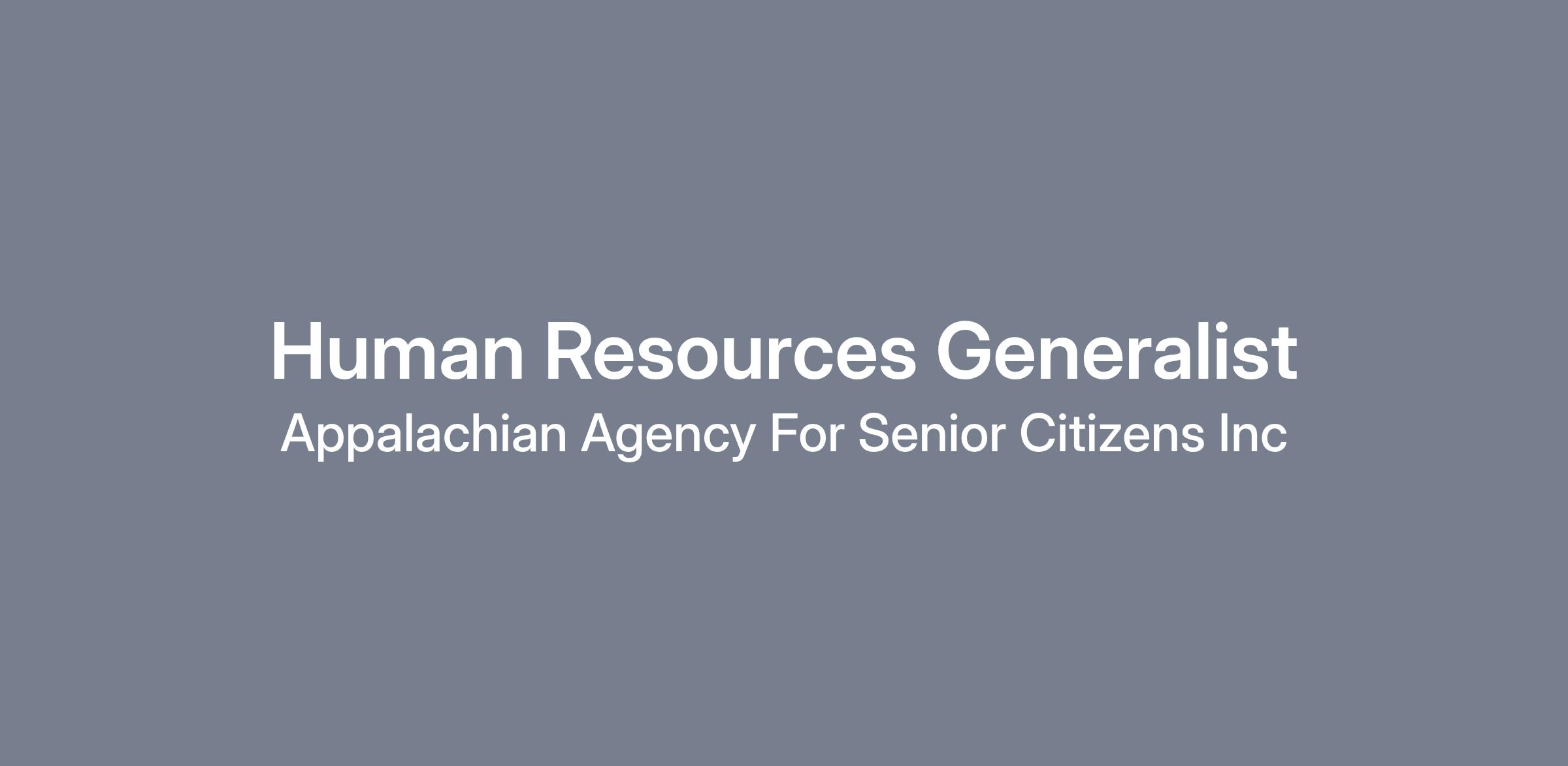 At the Appalachian Agency for Senior Citizens the Human Resources (HR) team is focused on what people need and how to provide it. For a people person who wants to begin a career in the exciting world of HR, this is the best place to dive in. We’re searching for a qualified and resourceful Human Resources Generalist to support our department in ensuring smooth and efficient business operations. The Human Resources Generalist will have both administrative and strategic responsibilities, and will help with important functions such as staffing, training and development, and compensation and benefits. At AASC we understand that our business thrives when our employees thrive, and it begins with hiring the right Human Resources Generalist.