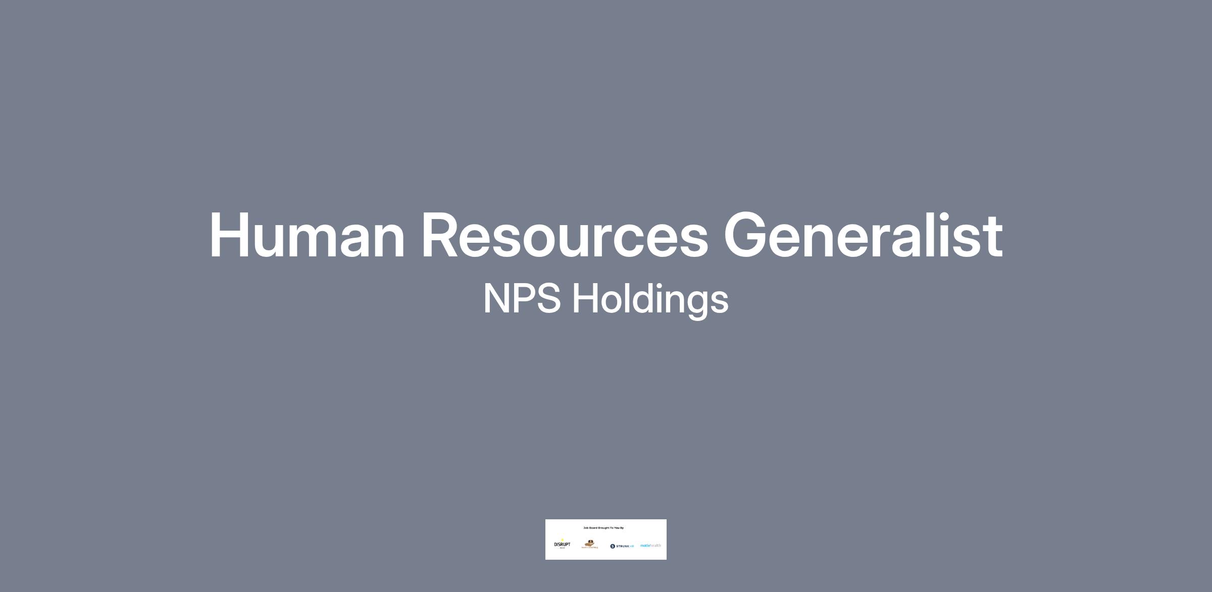 Job Overview As a Human Resources Generalist, you will play a pivotal role in supporting NPS. You will serve as a vital link between supervisors and team members, handling various HR functions with professionalism, integrity, and confidentiality.
