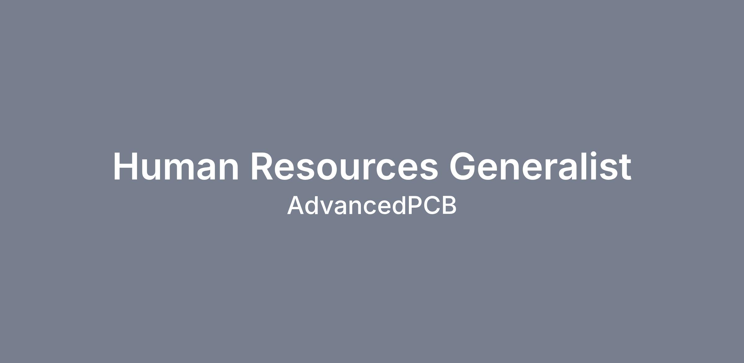 The Human Resource Generalist aids with and facilitates the human resource processes at their assigned business location(s). The Human Resource Generalist will assist in ensuring the AdvancedPCB philosophy is consistently reinforced by holding all staff accountable through positive reinforcement of policies and procedures.