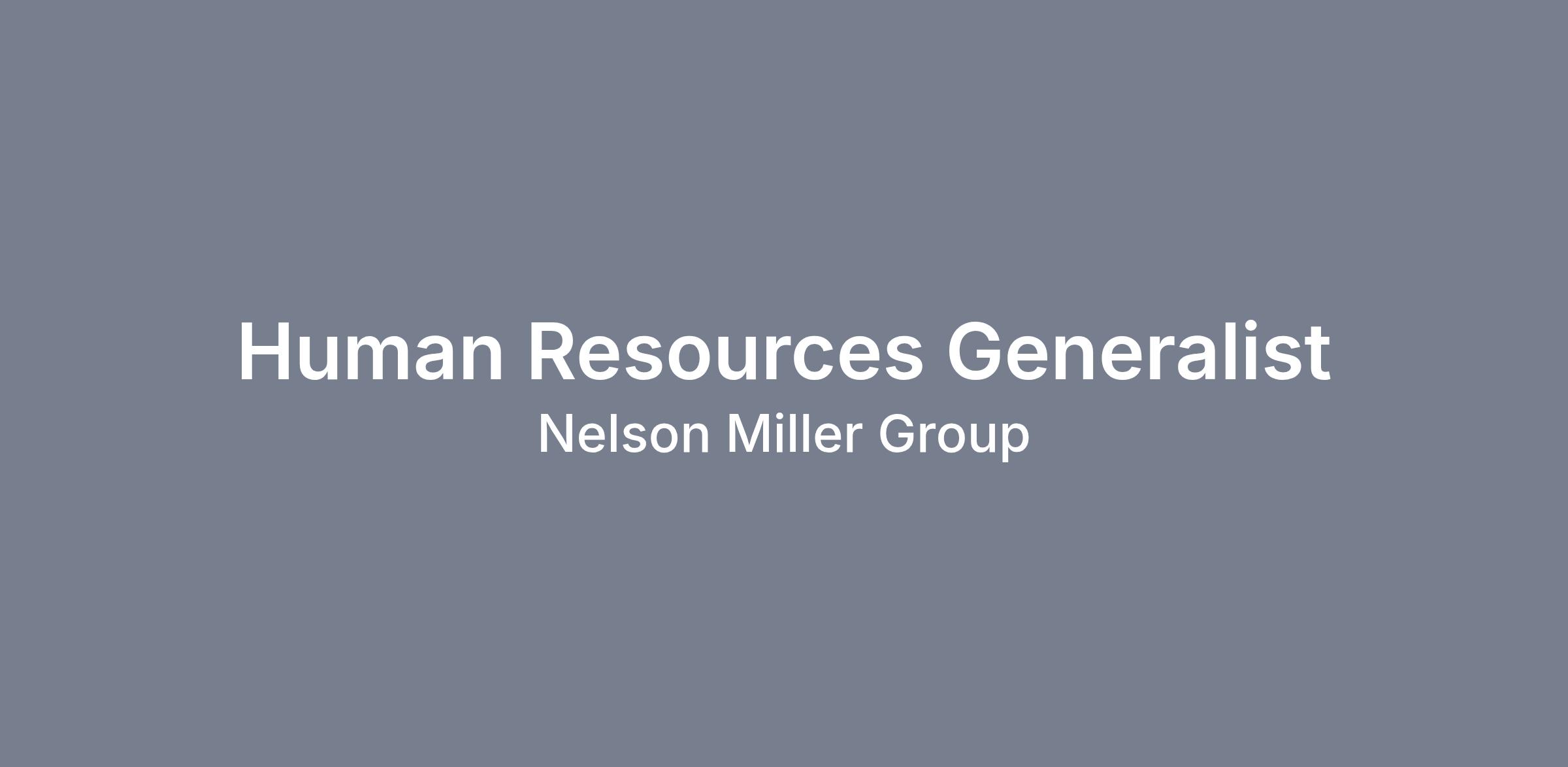 Benefits Offered: Comprehensive benefit package including medical, dental and vision coverage; company-paid basic life/AD&D insurance, short-term and long-term disability insurance; \voluntary supplemental insurances, flexible spending accounts and employee assistance program (EAP). Sick Leave, Vacation Time, and company-paid Holidays are provided as paid time off. Nelson Miller Group also provides a 401(k) Retirement Savings Plan option with a safe harbor non-elective company contribution.
