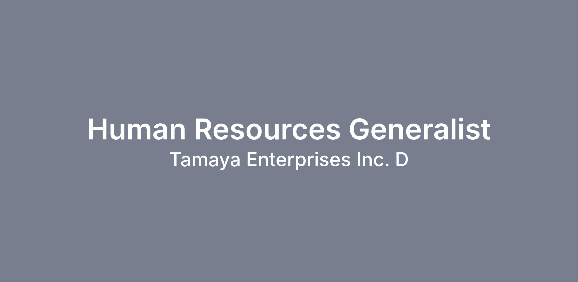 Job Summary: | The Human Resources Generalist assists with the development, administration, and implementation of human resources programs, policies and procedures covering employment, employee relations, HR administration, training, and benefits with emphasis on exposure to all aspects of the human resources field. | |