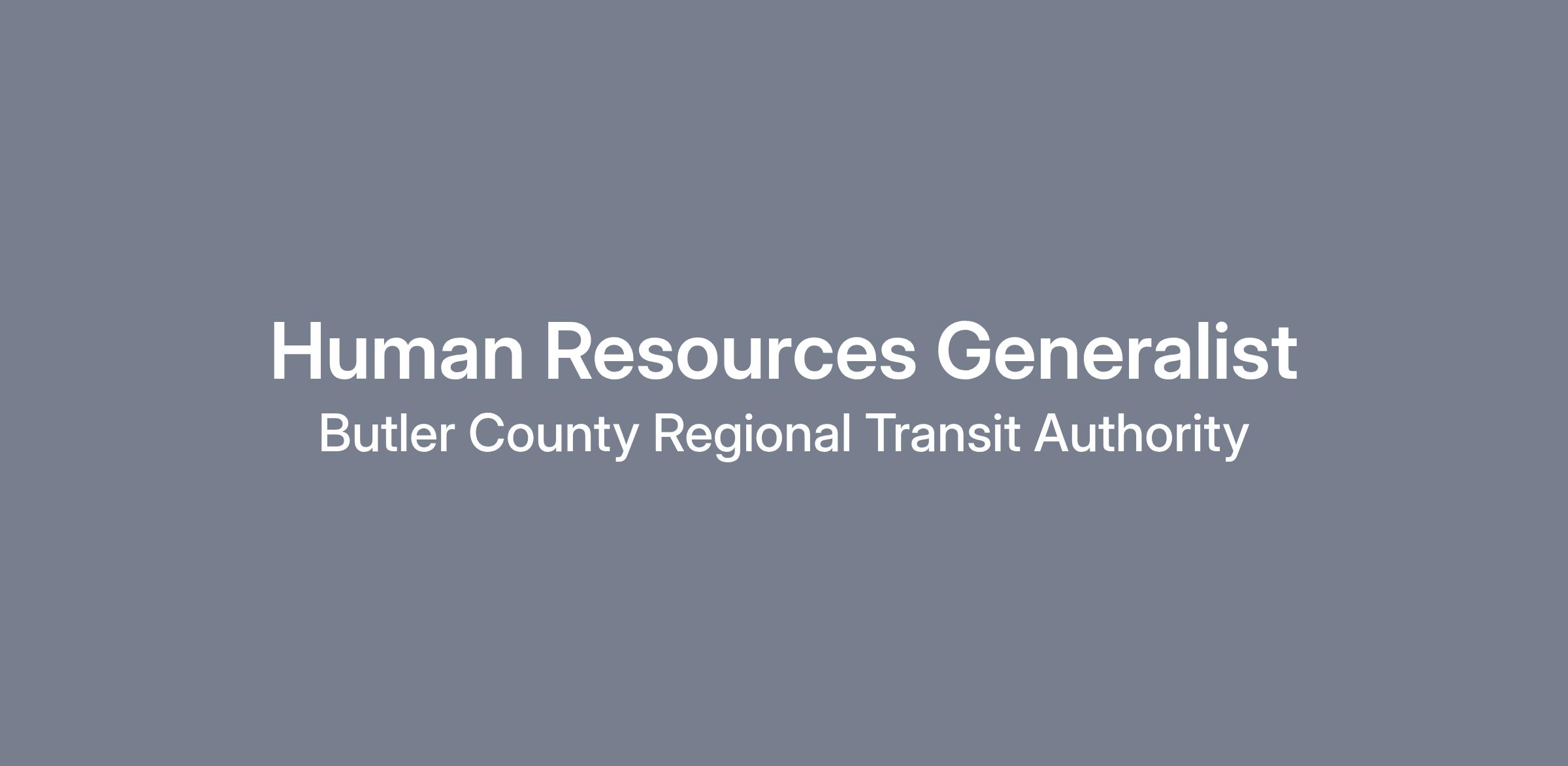 The Human Resources Generalist will act as the frontline HR representative for all employees at BCRTA. The HR Generalist will be responsible for providing applicants and employees with excellent customer service and problem resolution while always maintaining strict confidentiality of information. Duties include but are not limited to communication with all employees regarding benefits, compensation, handbook compliance, attendance, FMLA, etc., filing, tracking monthly HR statistics, compliance with EEO requirements, accident file audits, new hire onboarding and drug and alcohol program compliance.
