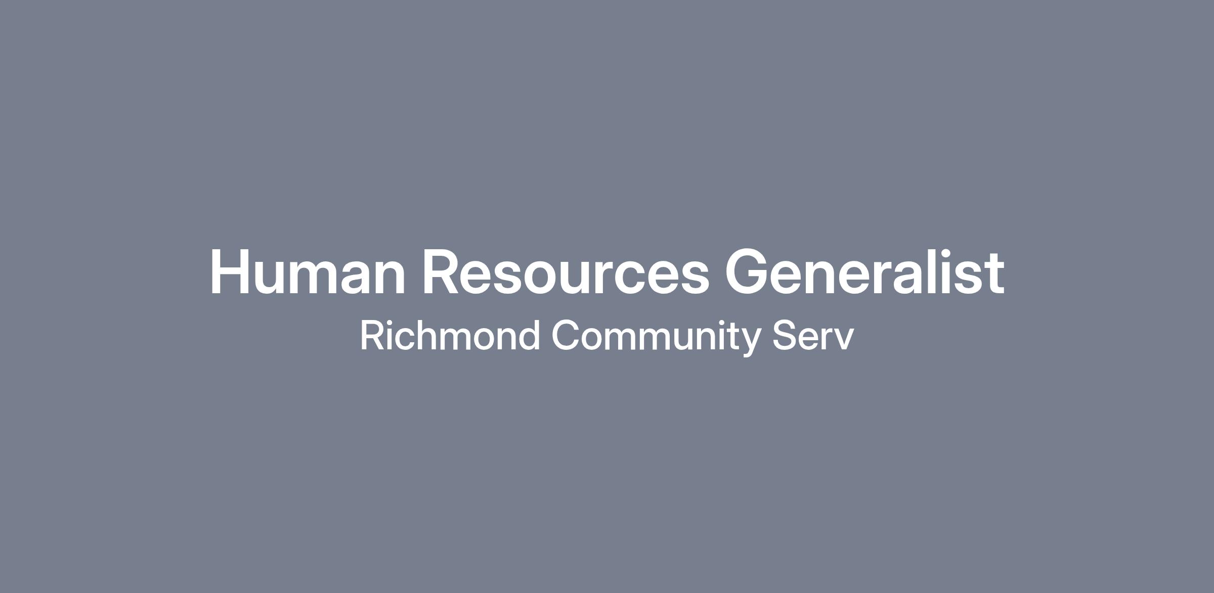 Richmond Community Services, a leading non-profit provider of support services for Westchester County's developmentally, intellectually and behaviorally challenged individuals, is seeking a Human Resources Generalist.