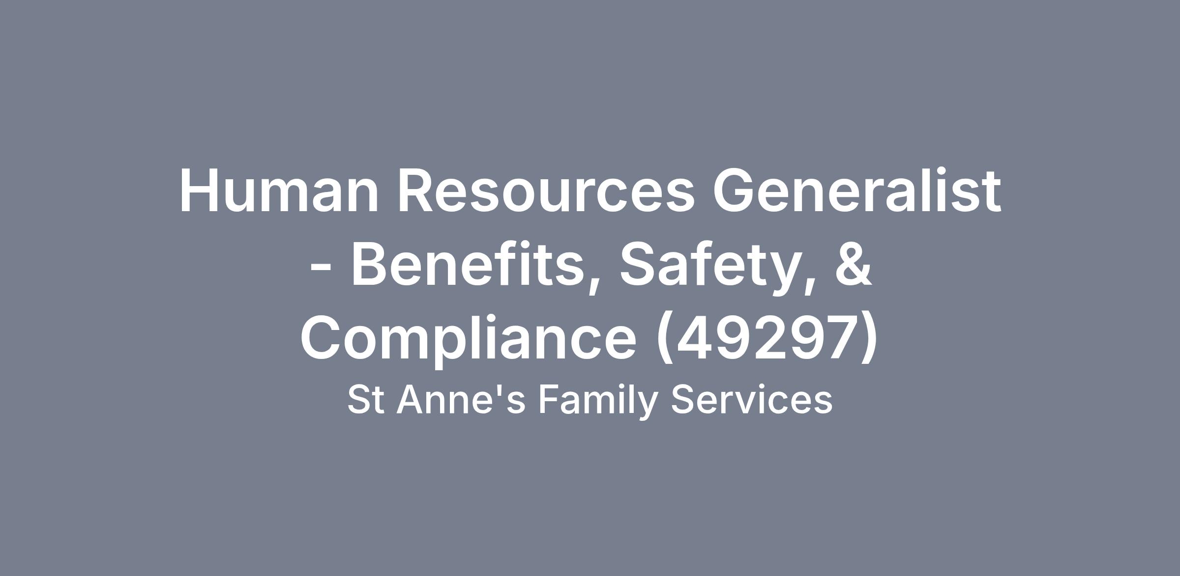About Us: St. Anne's Family Services is dedicated to transforming lives and communities. We're committed to providing unwavering support to families, from pregnancy to parenthood and childhood to adulthood. Our work brings about life-changing transformation, and we're seeking a Human Resources Generalist to join our team and be a vital part of this mission.