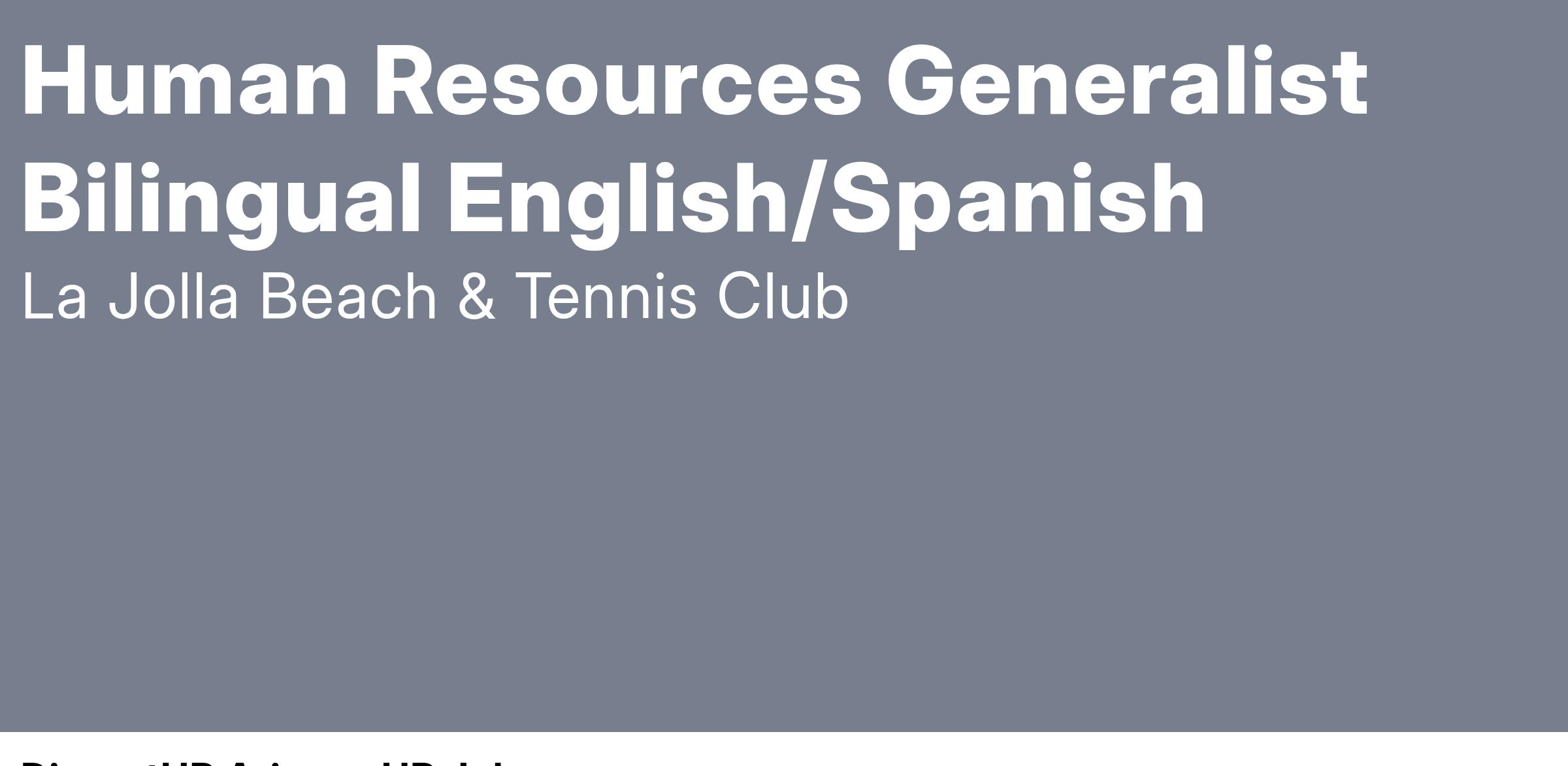 The La Jolla Beach & Tennis Club is currently seeking a highly skilled Human Resources Generalist to join our team at our beautiful oceanfront property!