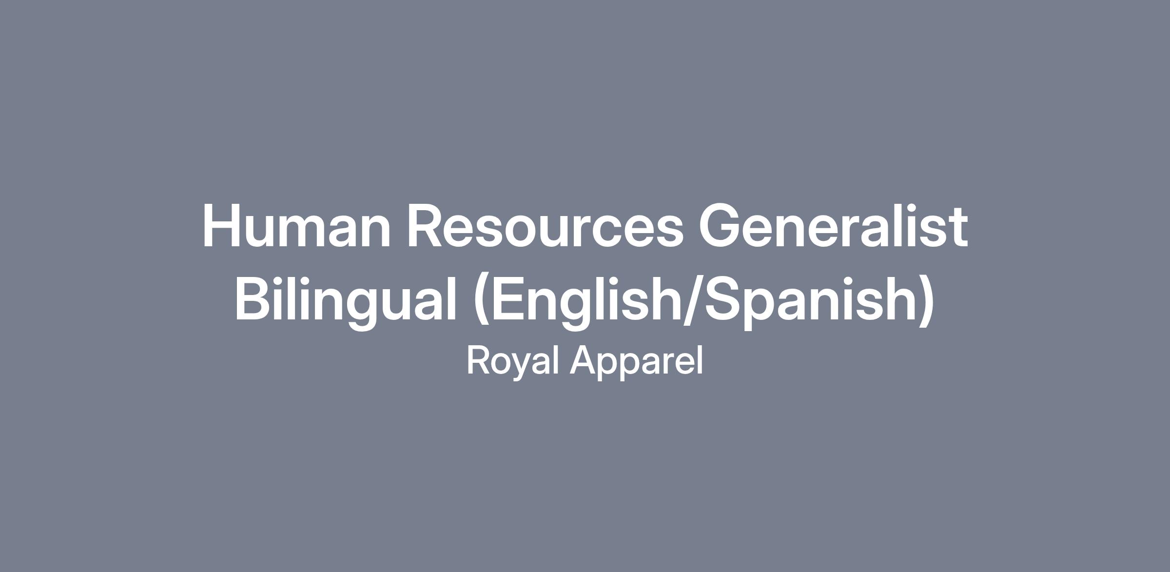 We are seeking a Bilingual Human Resources Generalist (English/Spanish) to support our growing apparel manufacturing operation in Hauppauge, NY. This role will manage day-to-day HR functions and serve as a key point of contact for both hourly production employees and management.