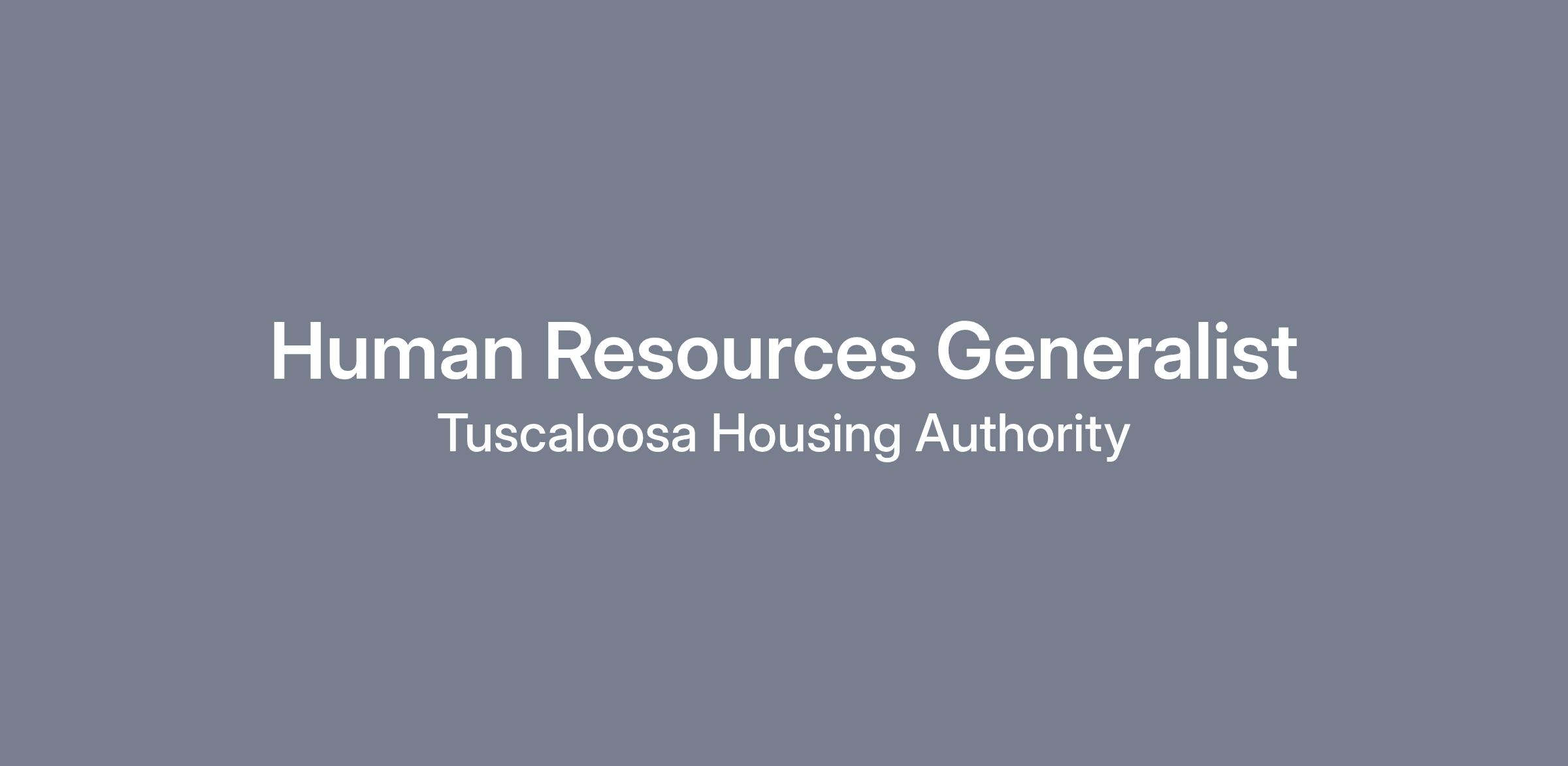 The Tuscaloosa Housing Authority is an Equal Opportunity Employer. This job description is subject to change and in no manner states or implies that these are the only duties and responsibilities to be performed. The duties herein are representative of the essential functions of this job. This job description reflects management's assignment of functions; however, it does not prescribe or restrict tasks that may be assigned. Nothing in this document restricts management's right to assign or reassign duties and responsibilities at any time. The qualifications listed above are guidelines, other combinations of education and experience that could provide the necessary knowledge, skills, and abilities to perform the job may be considered at the discretion of the Executive Director. Employment with the Tuscaloosa Housing Authority is on an “at-will” basis. Nothing in this document is intended to create an employment contract, implied or otherwise, and does not constitute a promise of continued employment. Disclaimer: The above statements describe the general nature, level, and type of work performed by the incumbent(s) assigned to this classification. They are not intended to be an exhaustive list of all responsibilities, demands, and skills required of personnel so classified. Job descriptions are not intended to and do not imply or create any employment, compensation, or contract rights to any person or persons. Management reserves the right to add, delete, or modify and/or all provisions of this description at any time as needed without notice. This job description supersedes earlier versions.