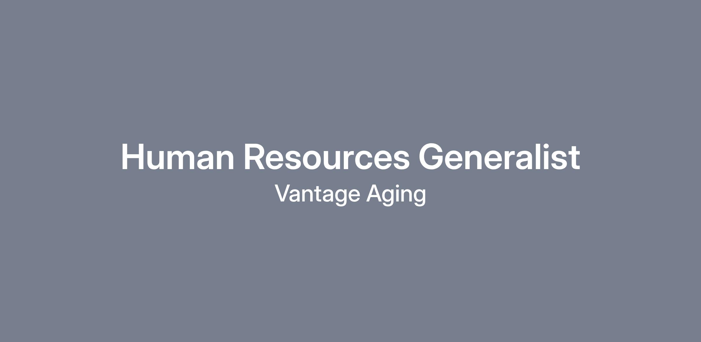 Vantage Aging is seeking a Human Resources Generalist to support daily HR operations across the full employee lifecycle. This role is responsible for recruitment, onboarding, payroll processing, benefits administration, employee relations, and compliance, while partnering with leadership to support a positive and compliant workplace.