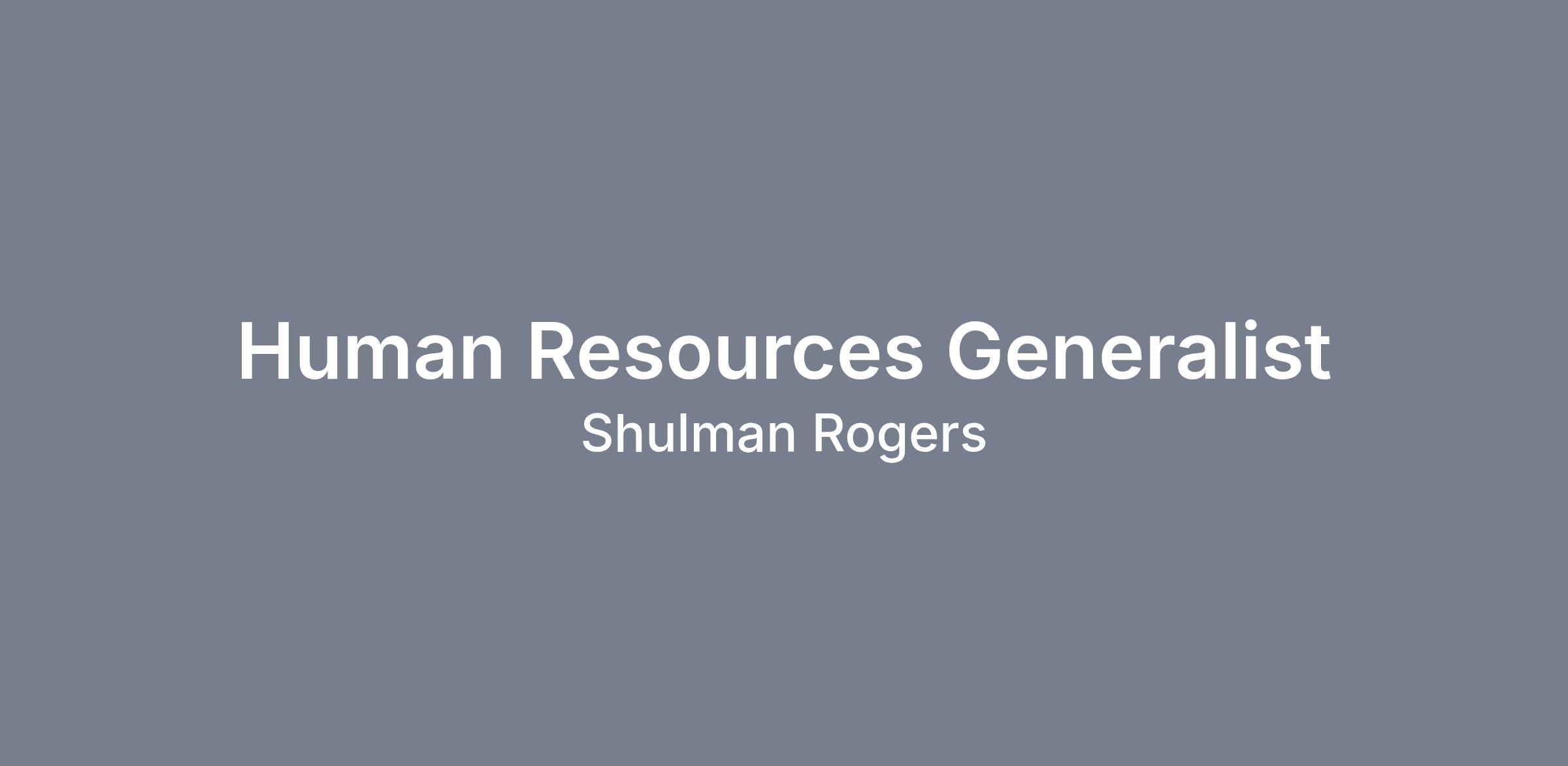 Shulman Rogers is seeking an Human Resources Generalist to join its HR team. This position will support the HR department's programs and processes, encompassing a variety of responsibilities. Key duties include assisting with recruitment efforts, managing onboarding procedures, and maintaining accurate employee records. Additionally, the HR Coordinator assists with compliance with labor laws and company policies, provides administrative support for employee benefits programs, and addresses employee inquiries and concerns.