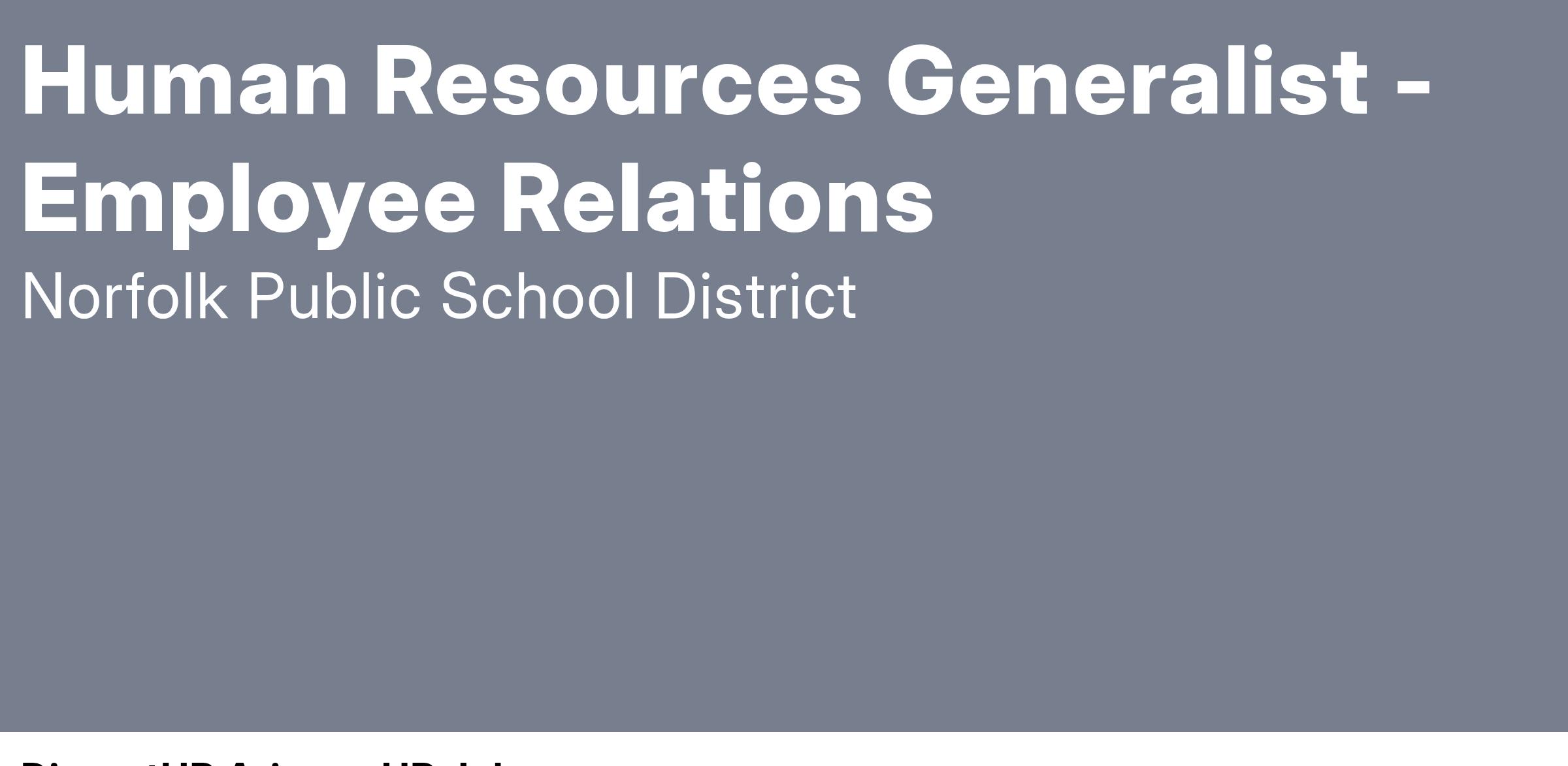 The Human Resources Generalist-Employee Relations is responsible for assisting in the management of activities related to employee relations in the school division. High-level administrative work is performed in the coordination of employee relations activities.