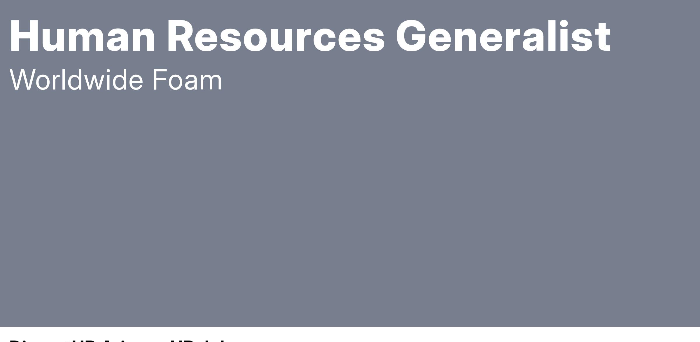 At Worldwide Foam, we believe great people drive great performance. We're looking for an experienced and dynamic HR Generalist to join our growing team and lead the charge on recruitment, onboarding, compliance, and employee engagement. This is your chance to shape our workplace culture and be a trusted partner to employees and leadership alike.