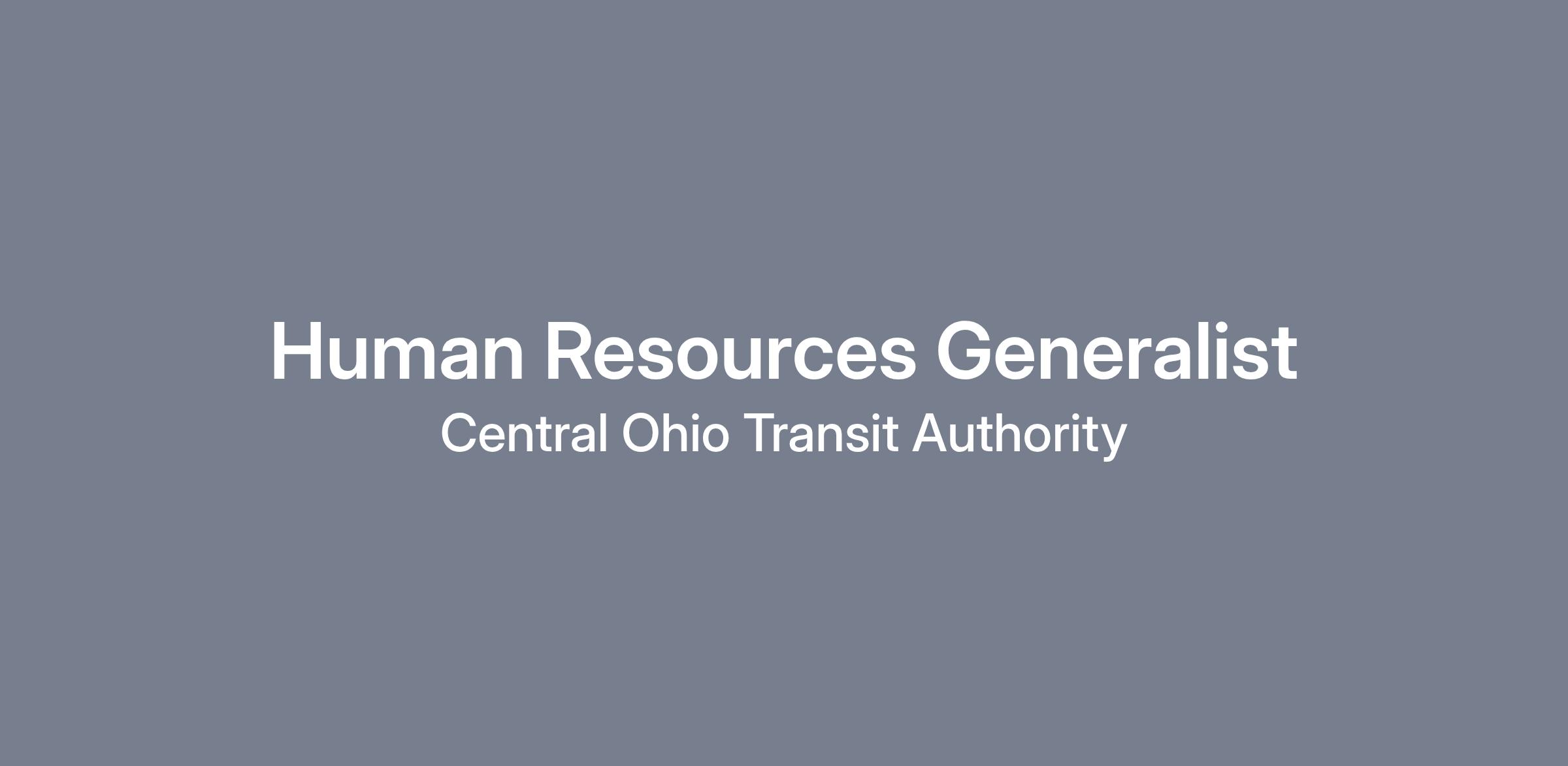 COTA's Human Resources Generalist performs high level professional work executing various human resources functions across the division. Responsibilities include executing the talent acquisition function for the organization, administering the new hire pre-employment and onboarding processes, managing HRIS data entry, supporting employee engagement initiatives and other Human Resources projects as needed.