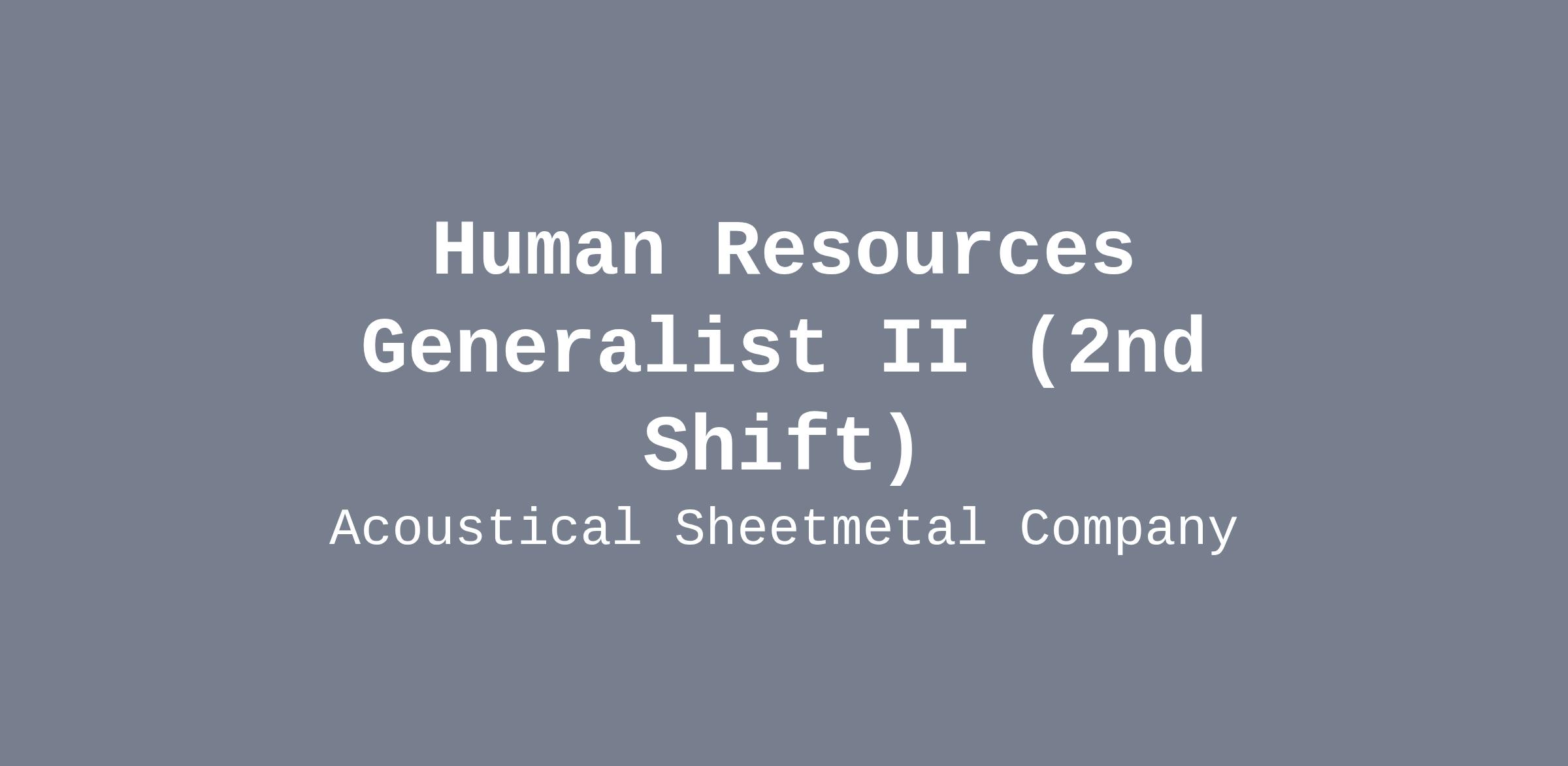 Acoustical Sheetmetal is seeking a dynamic and HR Generalist II to play a vital role in supporting the day-to-day operations of our Human Resources department. This position is key to ensuring a positive and productive workplace, where employees feel supported and policies are consistently upheld. We’re looking for someone who’s passionate about people and ready to contribute to a growing, hardworking team. The hours for this position are 11am – 9pm, Monday through Thursday. The candidate will provide HR support for our second shift employees. The role will require flexibility to support both of our manufacturing plants located in Virginia Beach as needed.