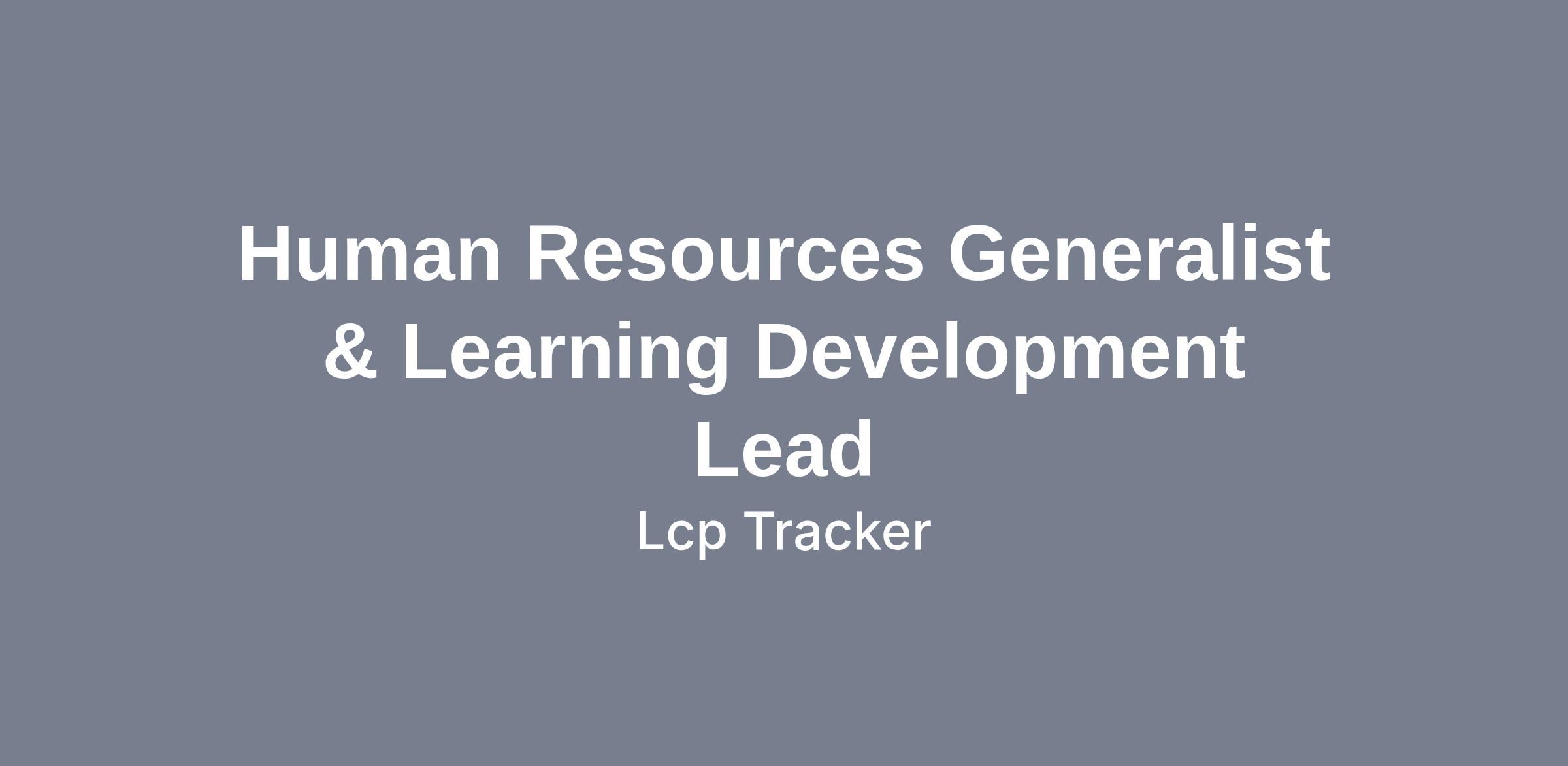 HR Generalist & Learning Development Lead