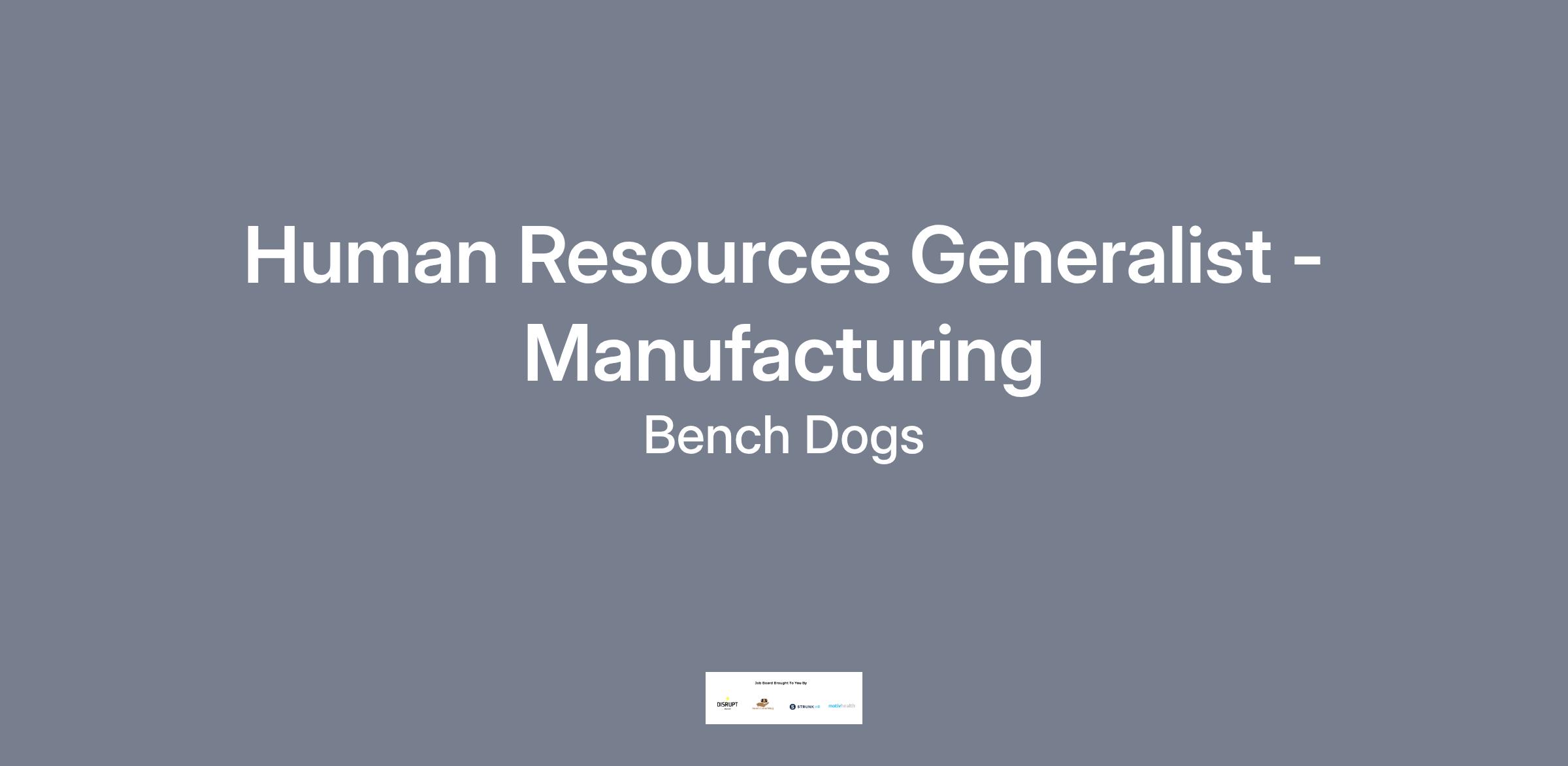 BENCH DOGS JOB OPENING: Human Resources Generalist - Manufacturing