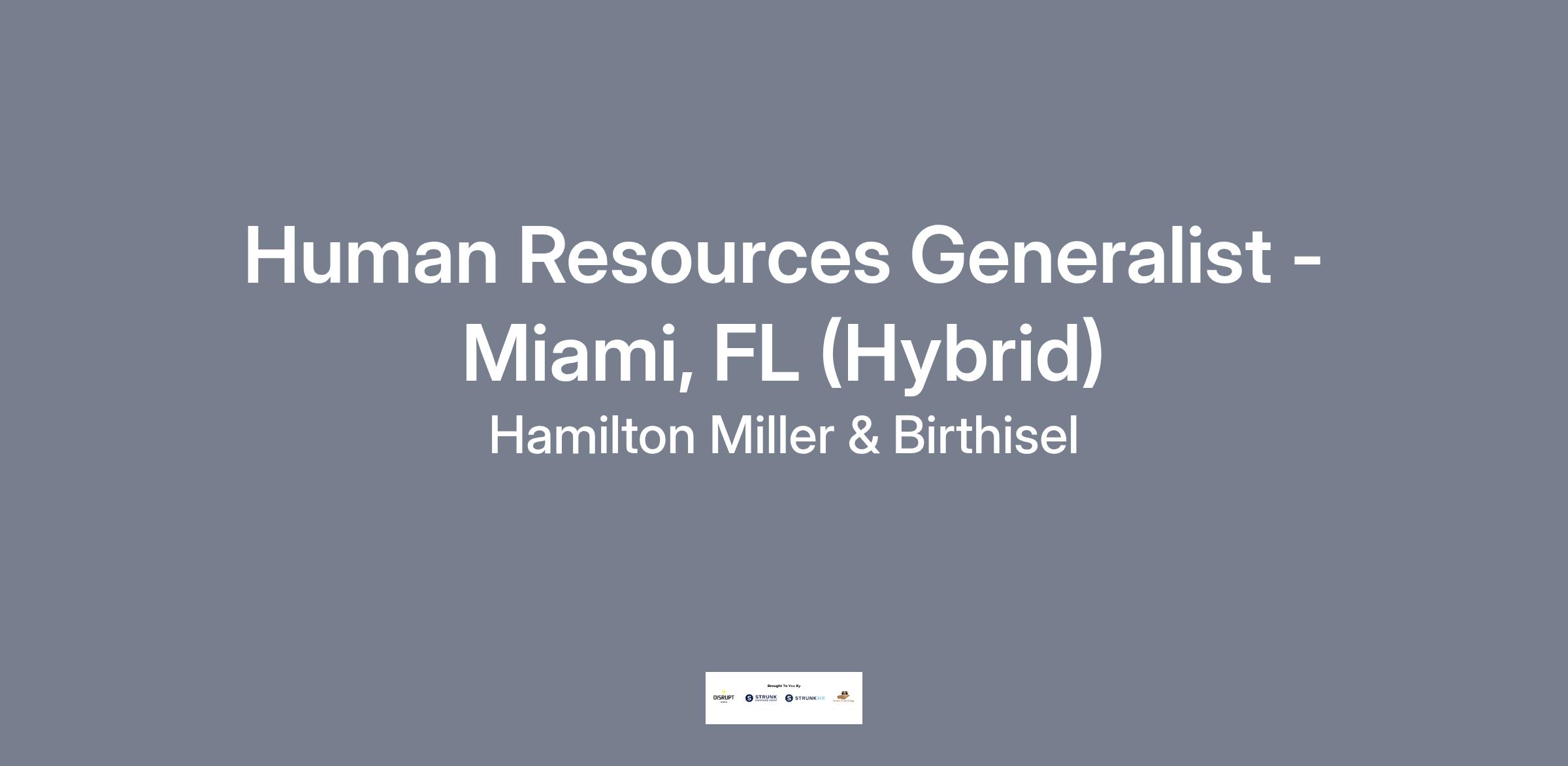 The HR Generalist will play a key role in supporting Hamilton, Miller & Birthisel human resources functions across multiple offices. This position requires a proactive, detail-oriented professional who can manage day-to-day HR operations, support employee engagement, and ensure compliance with employment laws and firm policies.