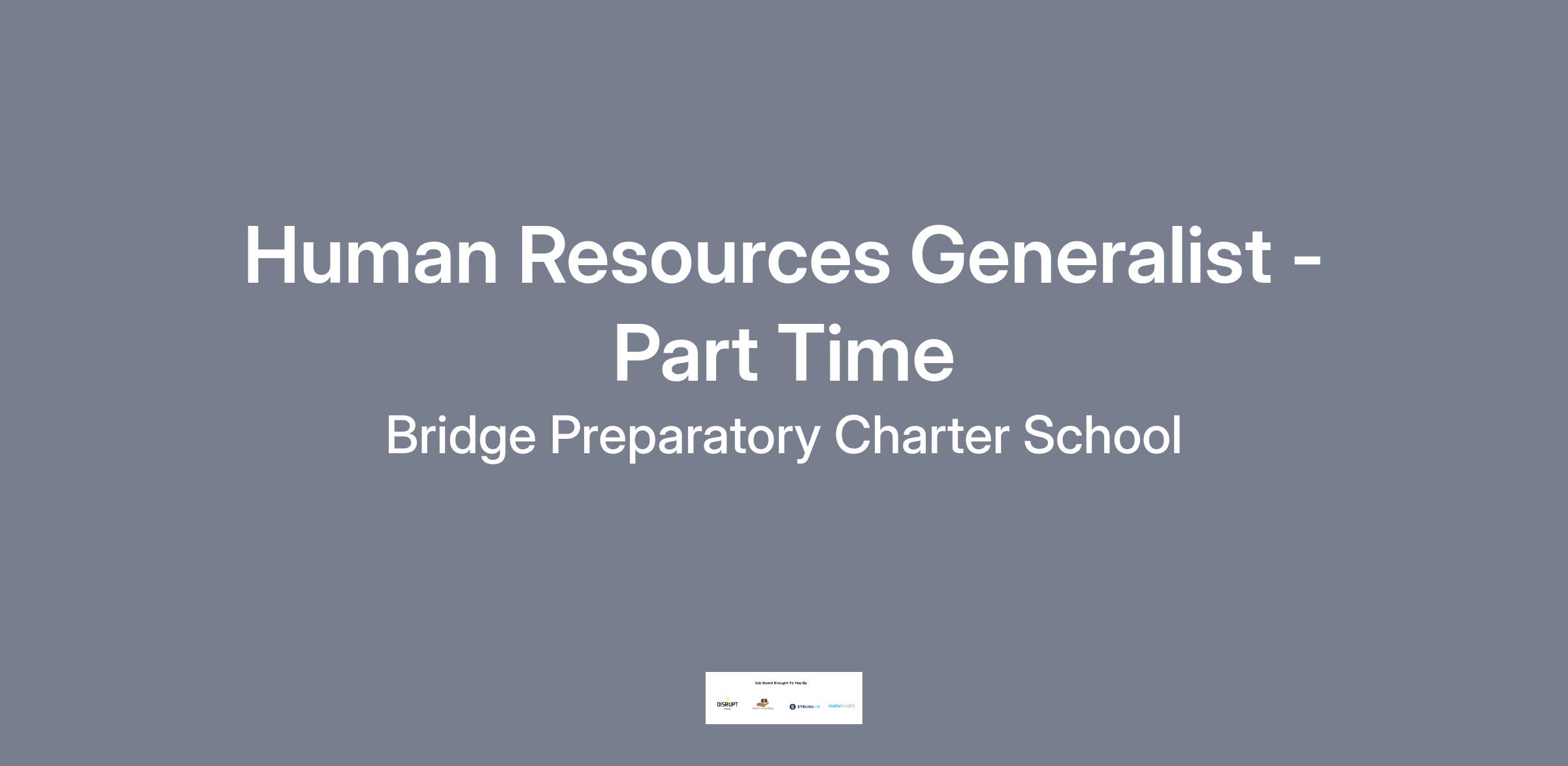 Bridge Prep is seeking a proactive and detail-oriented Human Resources(“HR”) Generalist to join our organizational team. This new role is responsible for supporting a wide range of internal HR functions including staff recruitment, onboarding, employee relations, benefits administration, compliance, and performance management. The ideal candidate will be a people-focused professional with a strong understanding of HR best practices and employment laws. Key responsibilities of the HR Generalist include: