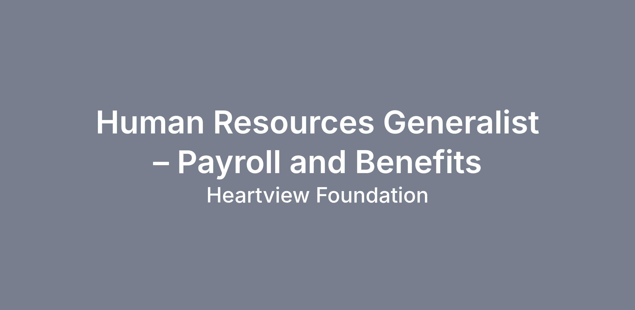 Heartview Foundation is committed to providing compassionate, high-quality care to individuals seeking treatment for substance use disorders. We are seeking a Human Resources Generalist to support our mission by ensuring employees are supported through accurate payroll administration and strong human resources practices.