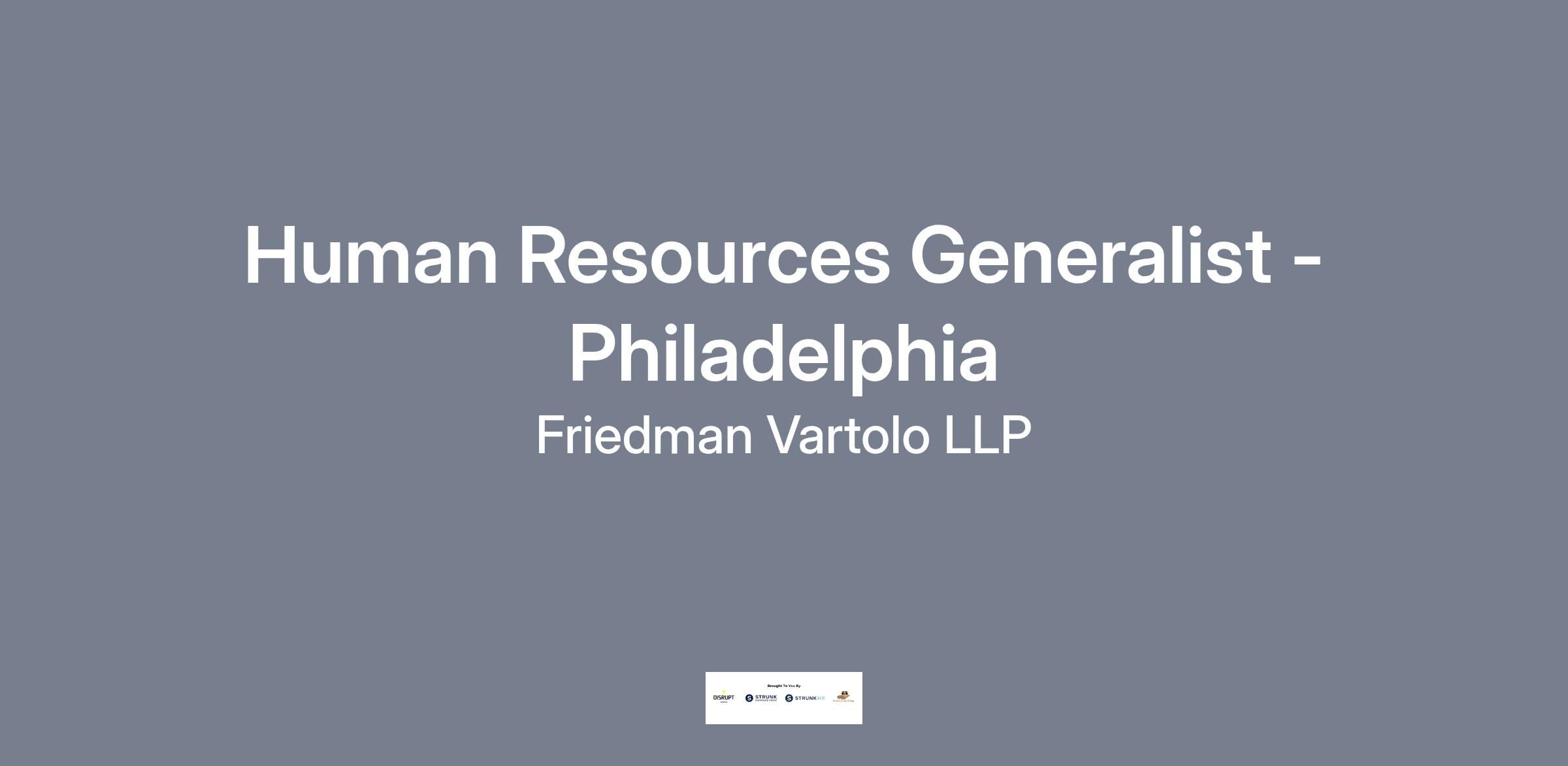 This full-time, exempt position reports to the Director of Human Resources and is expected to work out of our Philadelphia office . The standard schedule is 38 hours per week, with hours from 9:00 AM to 6:00 PM Monday through Thursday, and 9:00 AM to 4:00 PM on Fridays, with flexibility to work a hybrid-remote schedule after 90 days of successful employment in good-standing with the firm.