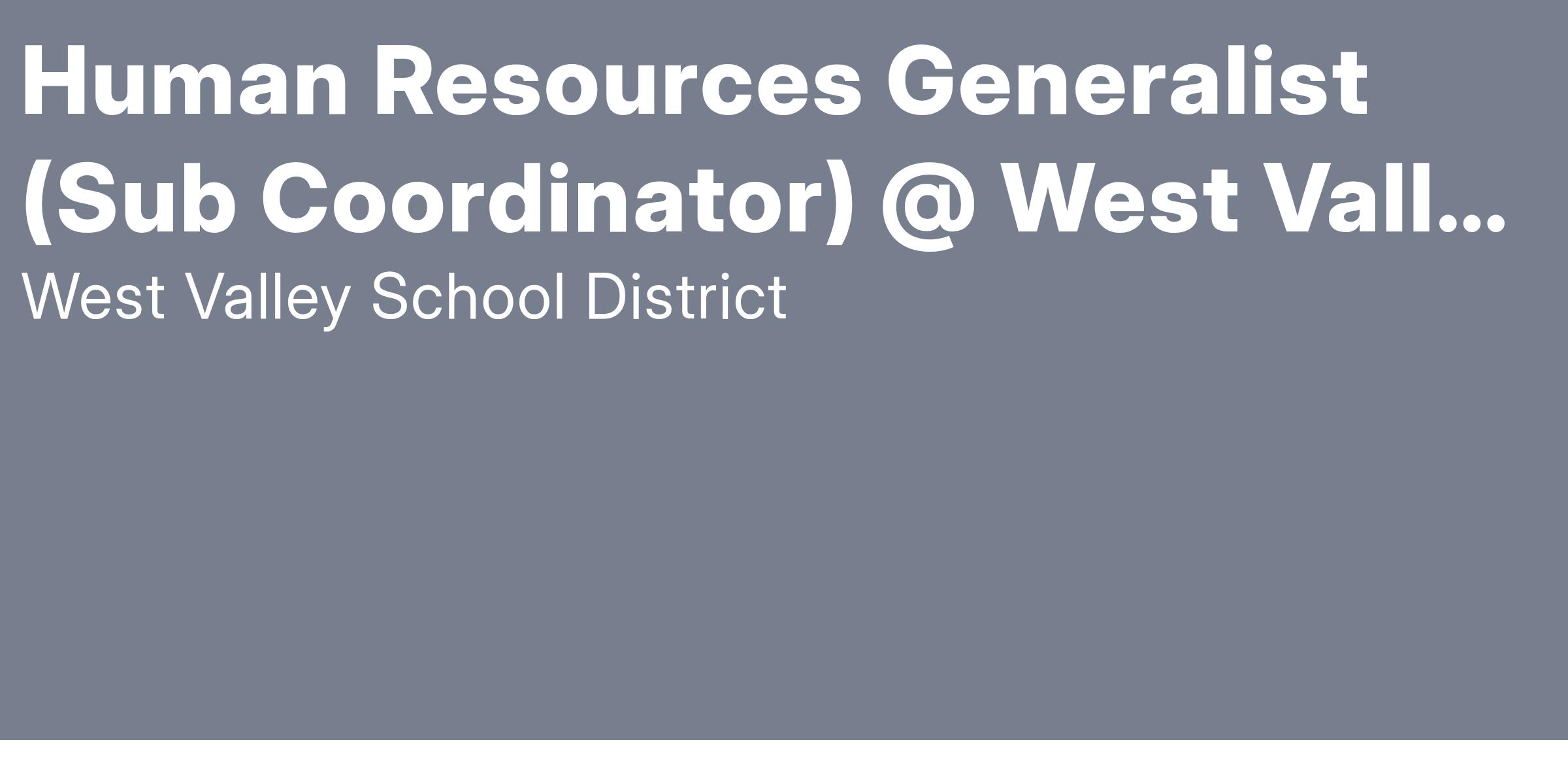 We are looking for a dynamic and reliable Human Resources Generalist to join our team. This position plays a key role in supporting day-to-day HR operations, ensuring compliance with employment laws, and fostering a positive and productive workplace culture. The HR Generalist will be responsible in assisting staff members with absences, coordinating appropriate sub coverage, and budget coding when needed. Through, TalentEd Recruit & Hire, the Human Resources Generalist is to evaluate applicants and maintain an adequate substitute pool for the District. Quality communication between buildings, substitutes, and regular employees is essential for this role.