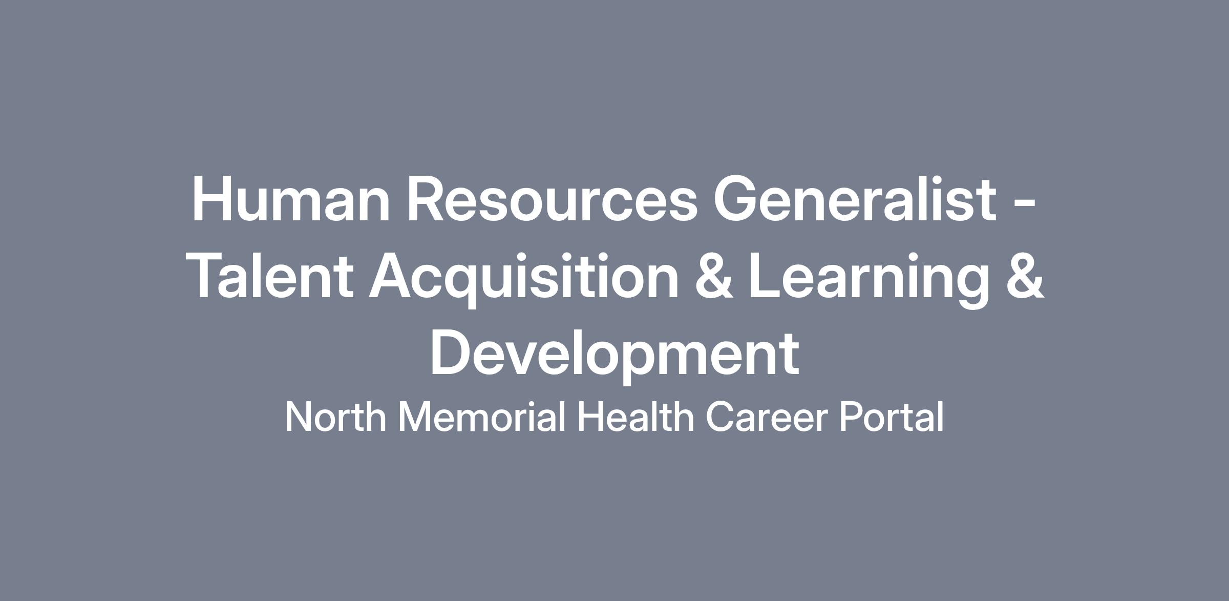 Commitment to Diversity, Equity & Inclusion At North Memorial Health we recognize that the strength of our team lies in our diversity and make every effort to embrace the unique contributions and experiences of each person on our team. We strive to ensure that everyone feels like they are a valuable part of our community, with initiatives that reinforce our belief in diversity, equity, and inclusivity, to promote a workforce that enables authenticity, as we want to be our best when providing effective services to our patients. We acknowledge and celebrate the unique traditions, backgrounds, languages, beliefs, and customs of our community, and want everyone to feel welcome. Through our DE&I initiatives we hope to dispel myths, assumptions, and acts of implicit bias. About this position Human Resources is dedicated to creating an unmatched team member experience, which we know drives the overall patient experience. We strive to differentiate our programs to ensure they support the unique needs of healthcare and services to be personalized, creating strong connections with those we serve. We are committed to building a diverse and inclusive health care organization and living our values in all we do.