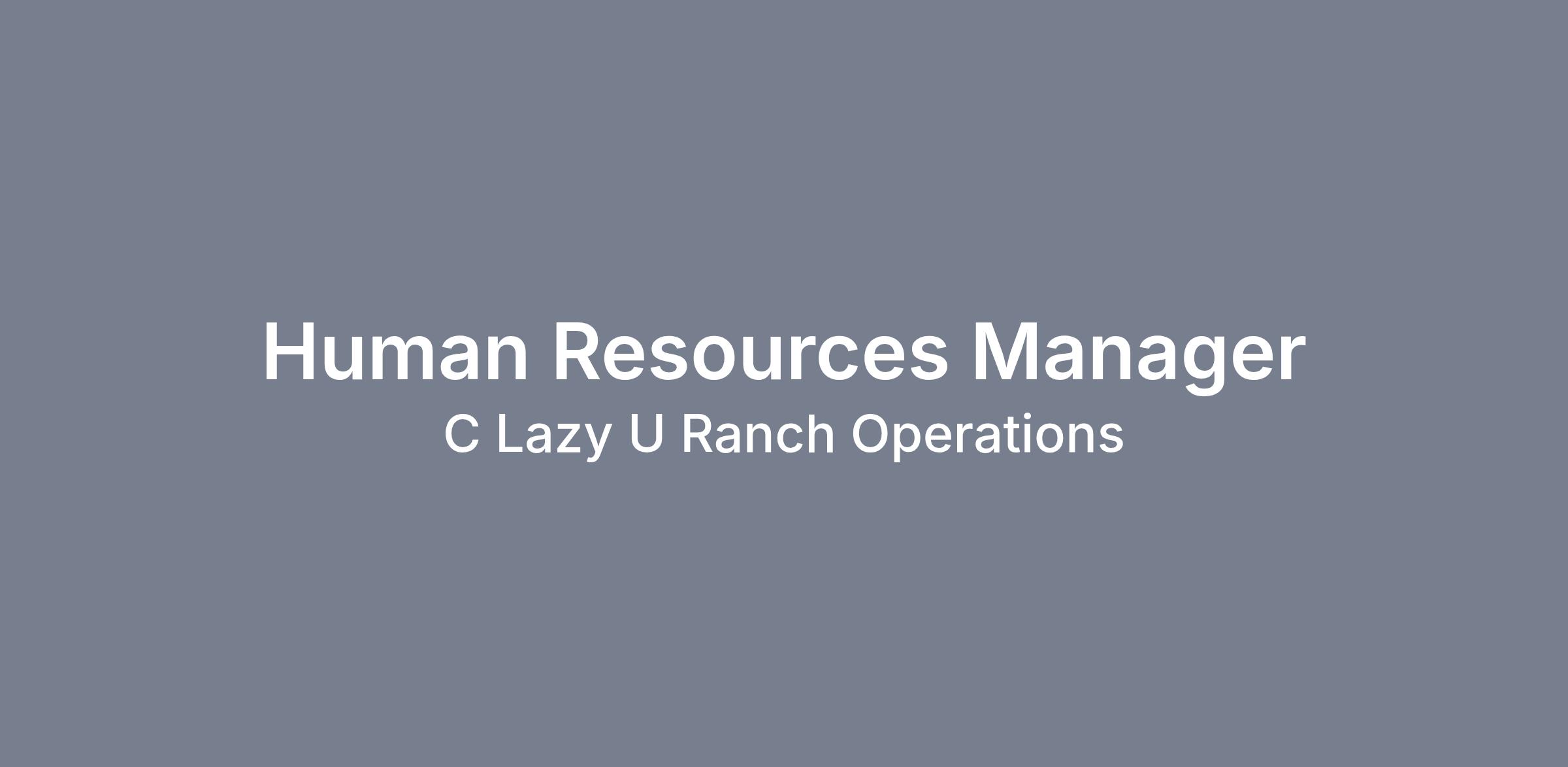 his Job Description is an overview of the scope of responsibilities for the Human Resources Manager and is not intended to be an inclusive list of tasks and expectations. Team members are held accountable for all duties of this job. This Job Description does not constitute a written or implied contract of employment. C Lazy U Ranch reserves the right to revise and change duties as the need arises.