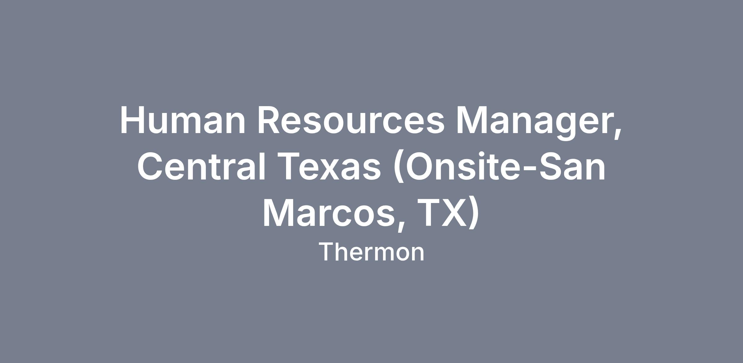 Reporting solid line to the Senior HR Business Partner, Western Hemisphere and dotted line repotting to Director of Operations, you will be working onsite (Monday- Friday) full-time based out of our San Marcos, Texas Campus Manufacturing Facility located at 100 Thermon Dr. San Marcos, Texas 78666.