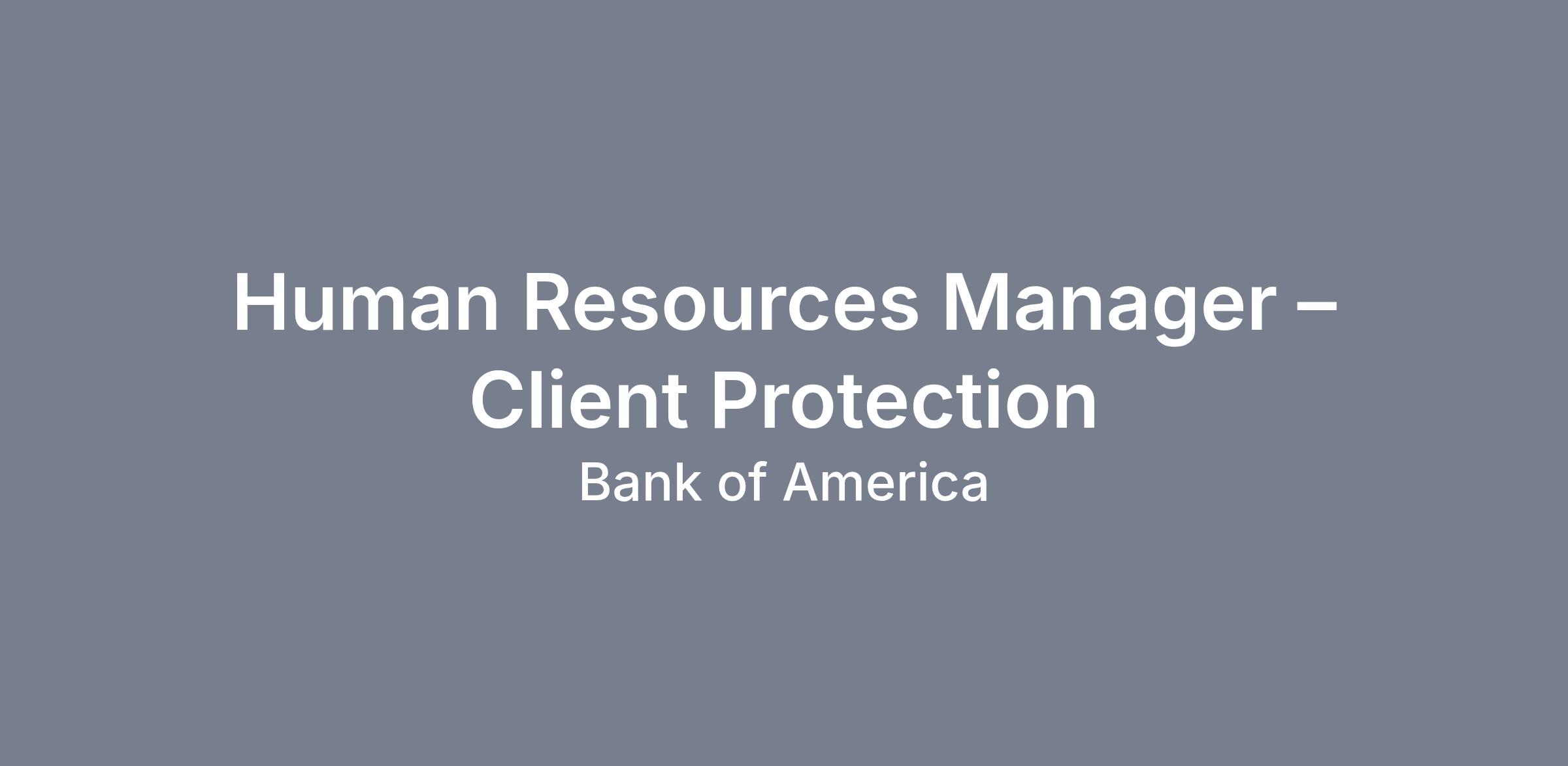 The Human Resources Manager will be a member of the Consumer, Retail and Preferred HR team supporting Client Protection.