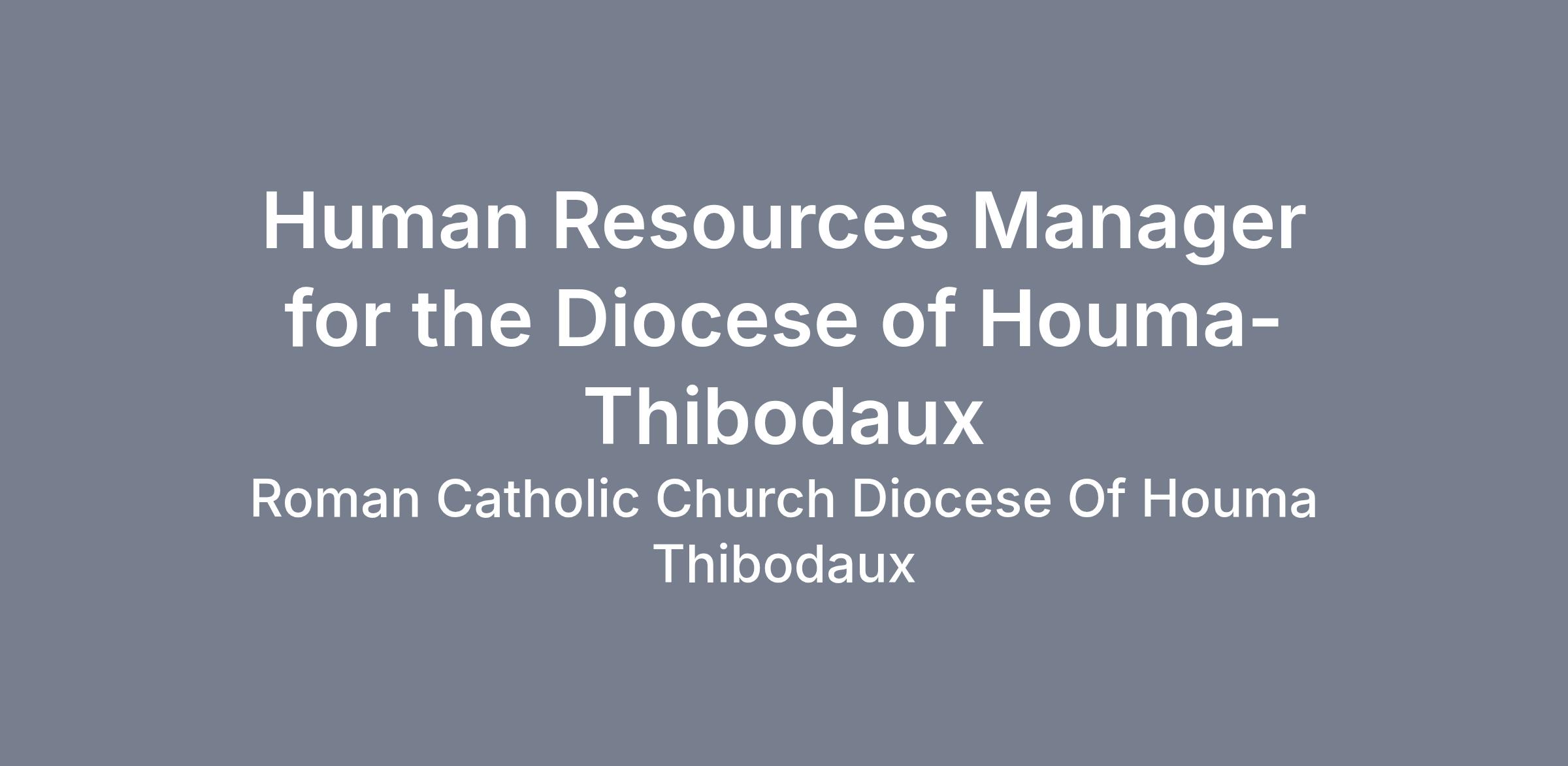 The Diocese of Houma-Thibodaux is seeking a mission-driven Human Resources Manager to oversee all human resources functions for the Diocese.