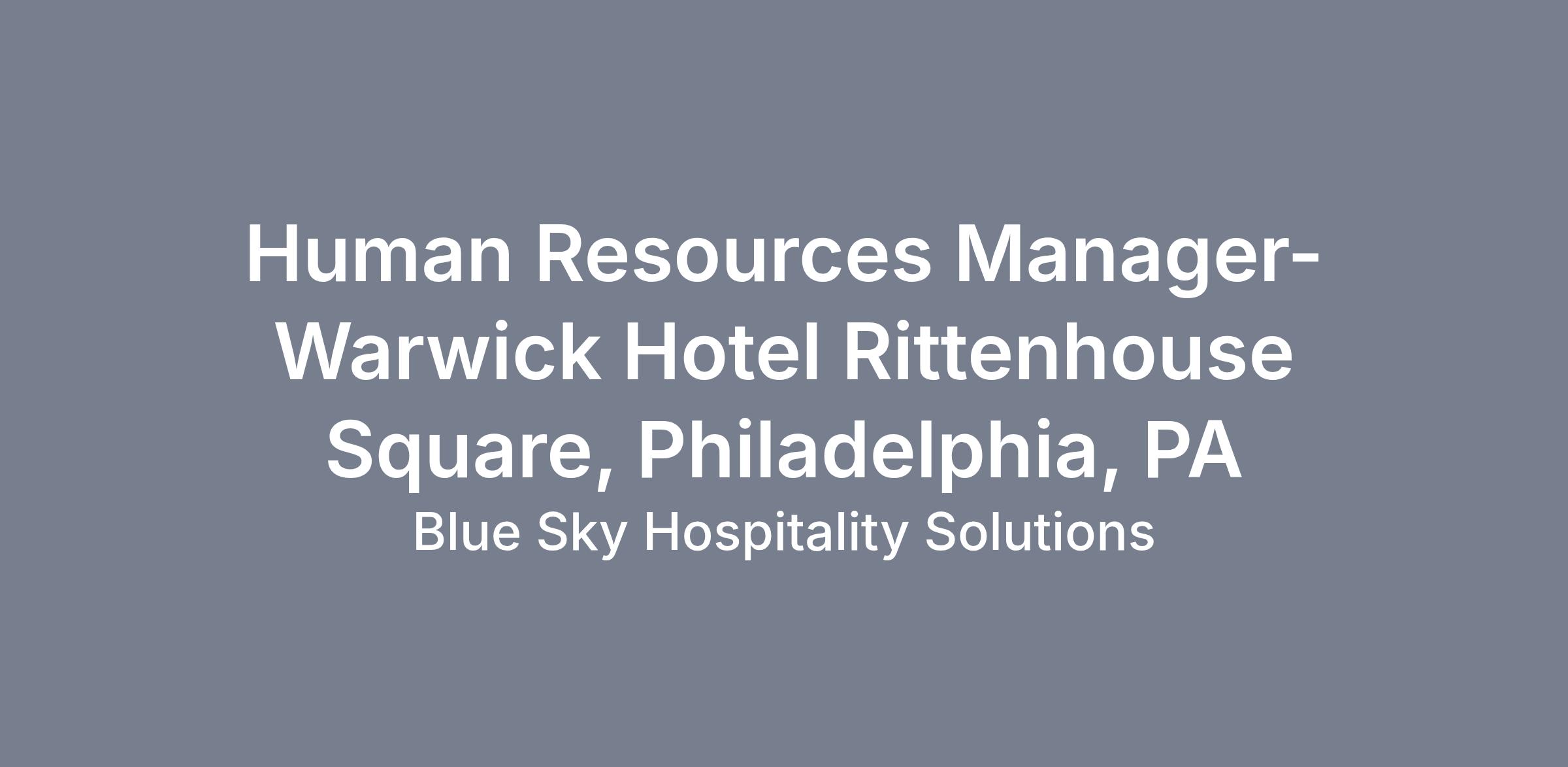 The Human Resources Manager will oversee the daily operation of the Human Resources office at Warwick Hotel Rittenhouse Square. This position is responsible for areas such as Recruiting, Employee Relations, Benefits, Events, Workers' Compensation, and other employee-related tasks. Additionally, the HR Manager will be responsible for the short and long-term planning of HR functions like workforce planning, recruitment, staffing strategies, wage and salary administration, associate and labor relations, benefits, and workforce training and development.