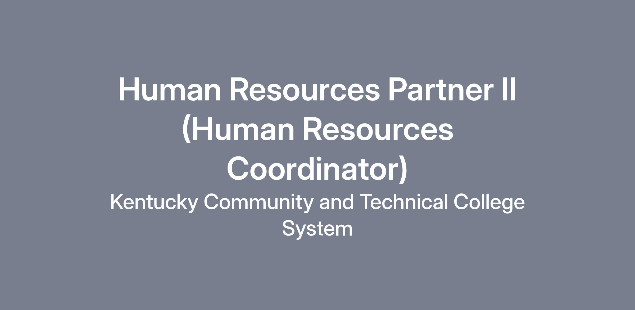 Title: Human Resources Partner II (Human Resources Coordinator)
