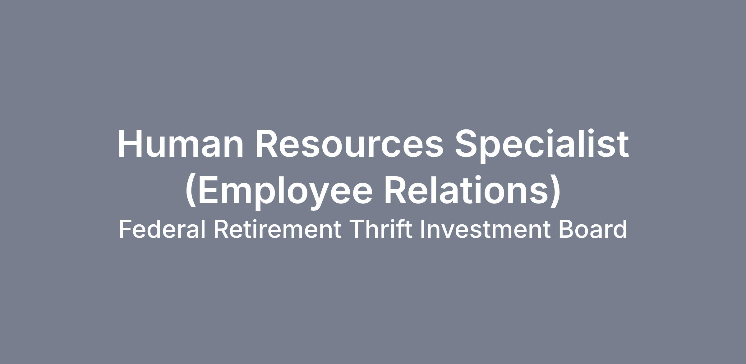 This Job Opportunity Announcement (JOA) may be used to fill other Human Resources Specialist (Employee Relations), GS-0201-14 positions within the FRTIB in the same geographical location with the same qualifications and specialized experience.