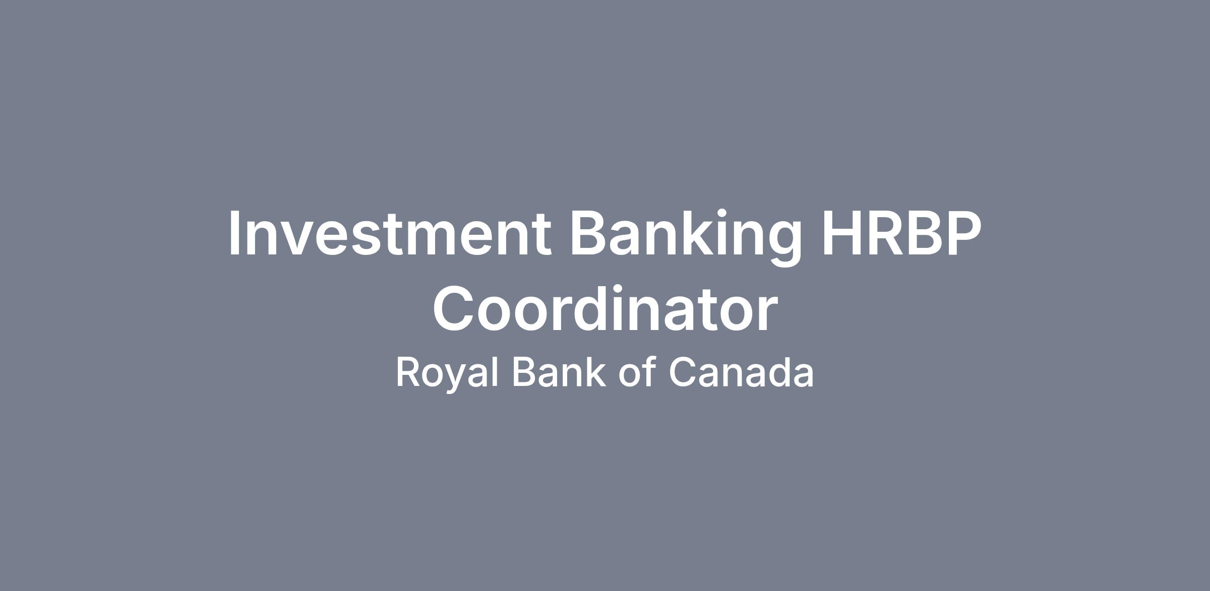 Investment Banking HRBP Coordinator