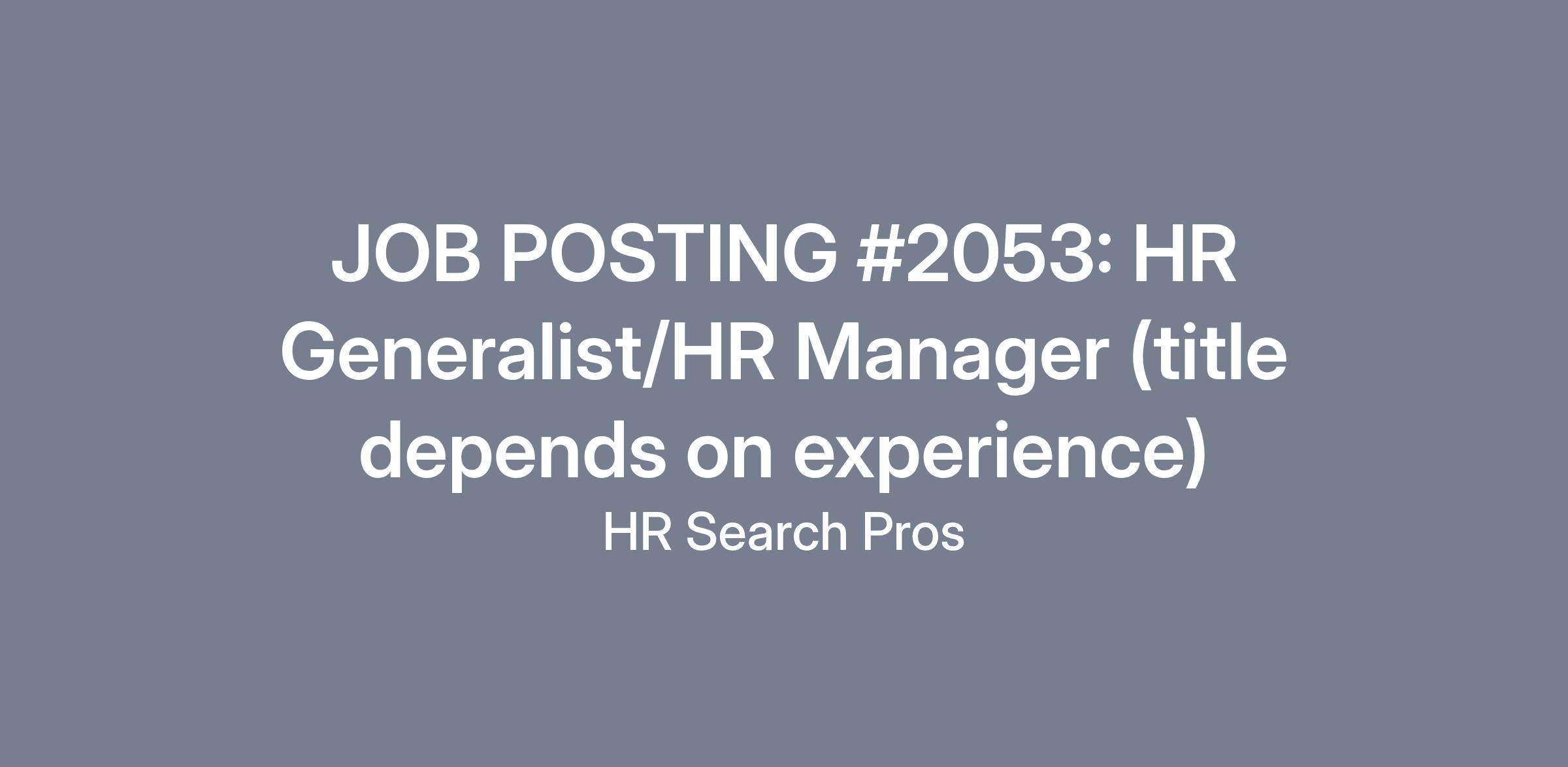 TITLE: HR Generalist/HR Manager (title depends on experience)