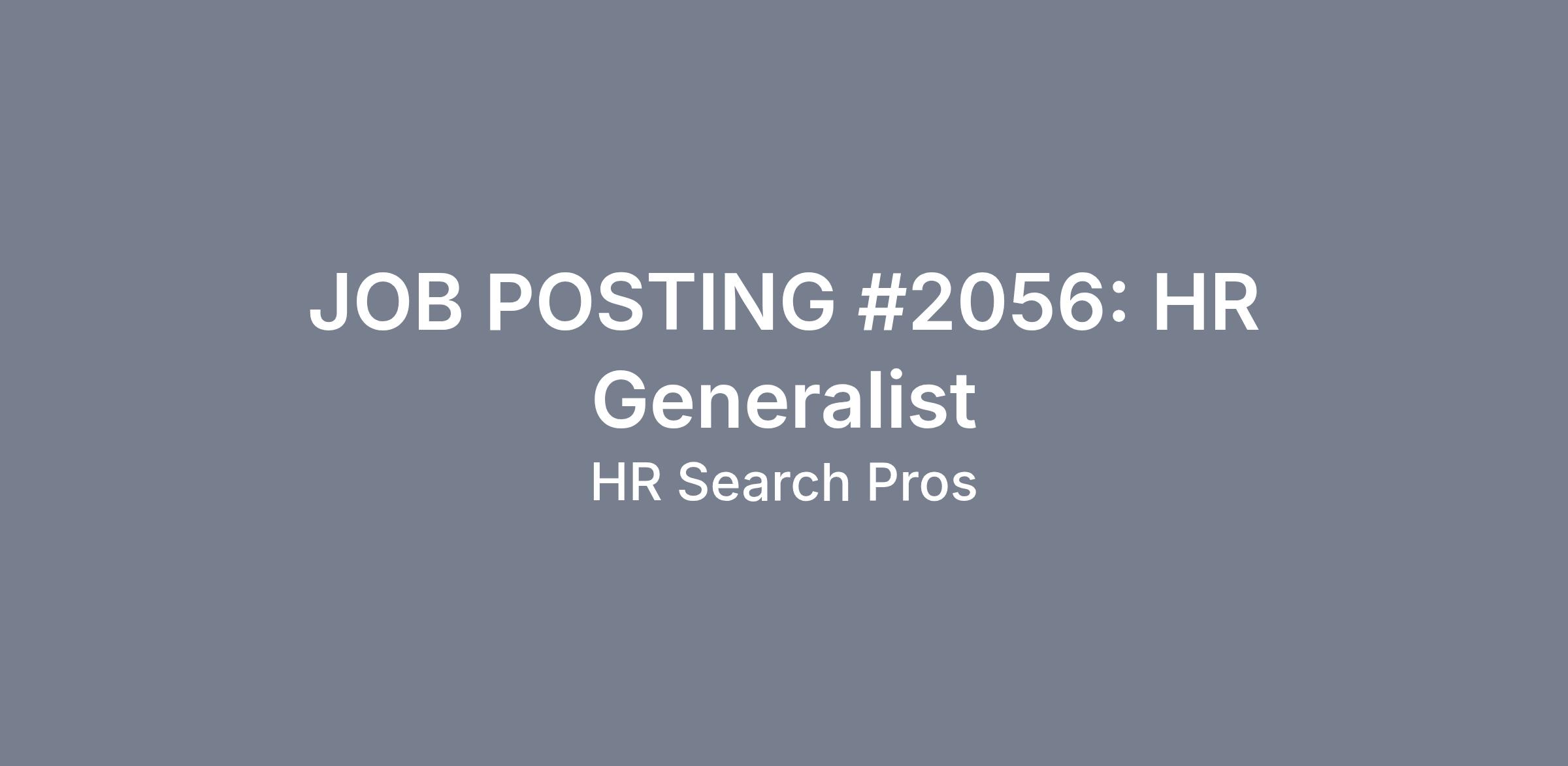 JOB POSTING #2056: HR Generalist