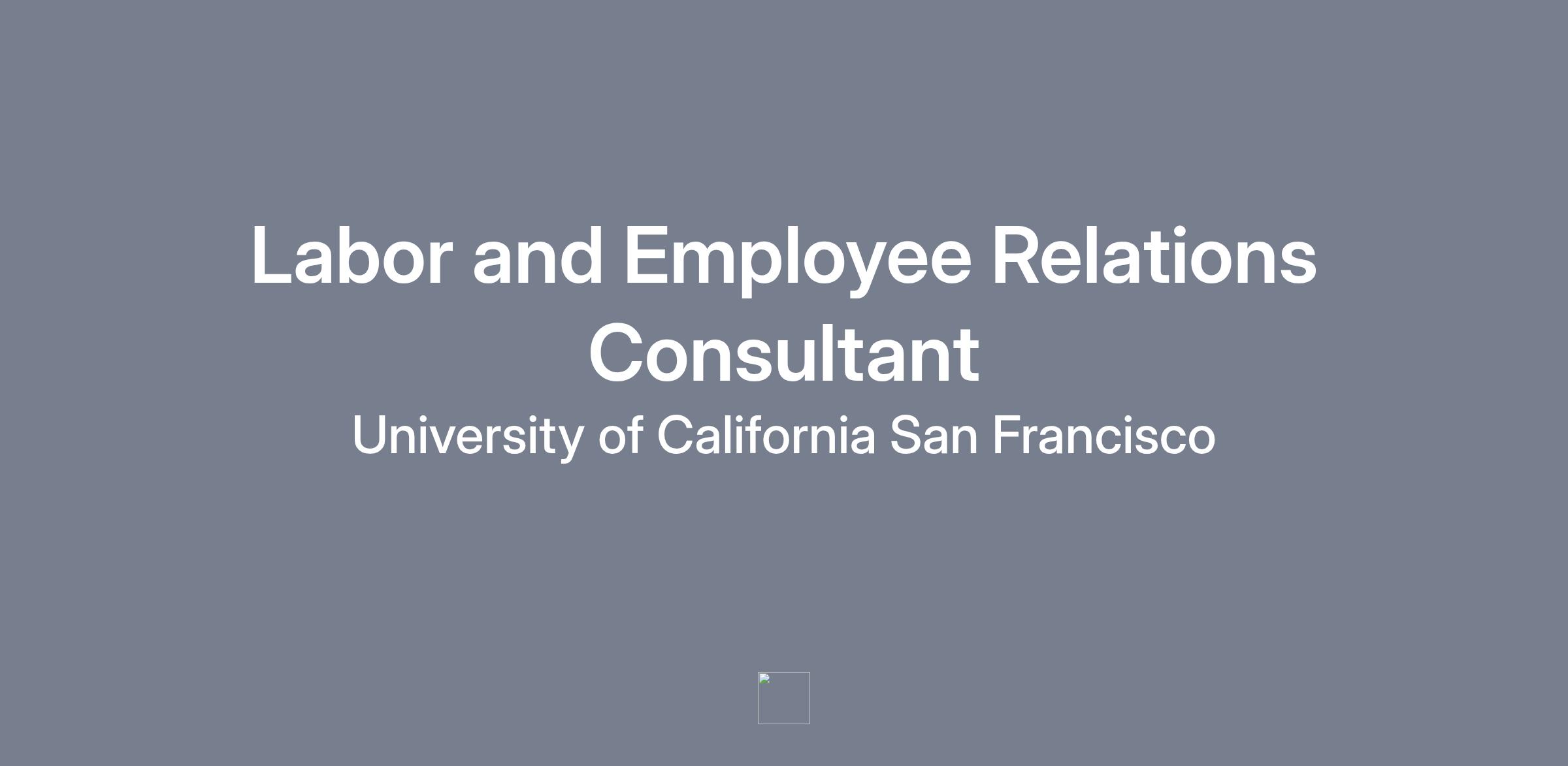 UCSF is preparing to welcome a Labor and Employee Relations Consultant to our department and you are might be what we are looking for! Our ideal candidate would be someone who is dynamic, highly analytical, willing to work hard, willing to learn and gain experience in an exciting field. UCSF is looking for-- An effective relationship builder who develops and establishes rapport and maintains mutually productive relationships and relates well to people from varied backgrounds and in different situations.