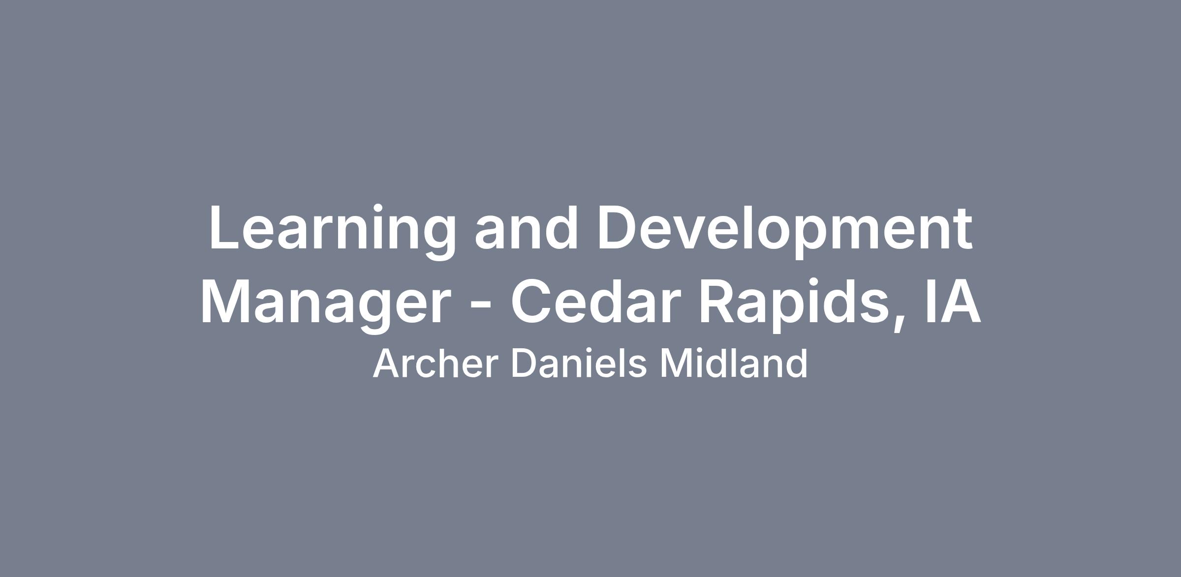 This role will be responsible for developing and coordinating learning tasks for the Cedar Rapids, IA location. This position is responsible for effective development, coordination and presentation of training and development programs for all direct production positions onsite. This position requires active searches, creativity designs and implementation of effective methods to educate, enhance performance and recognize performance.