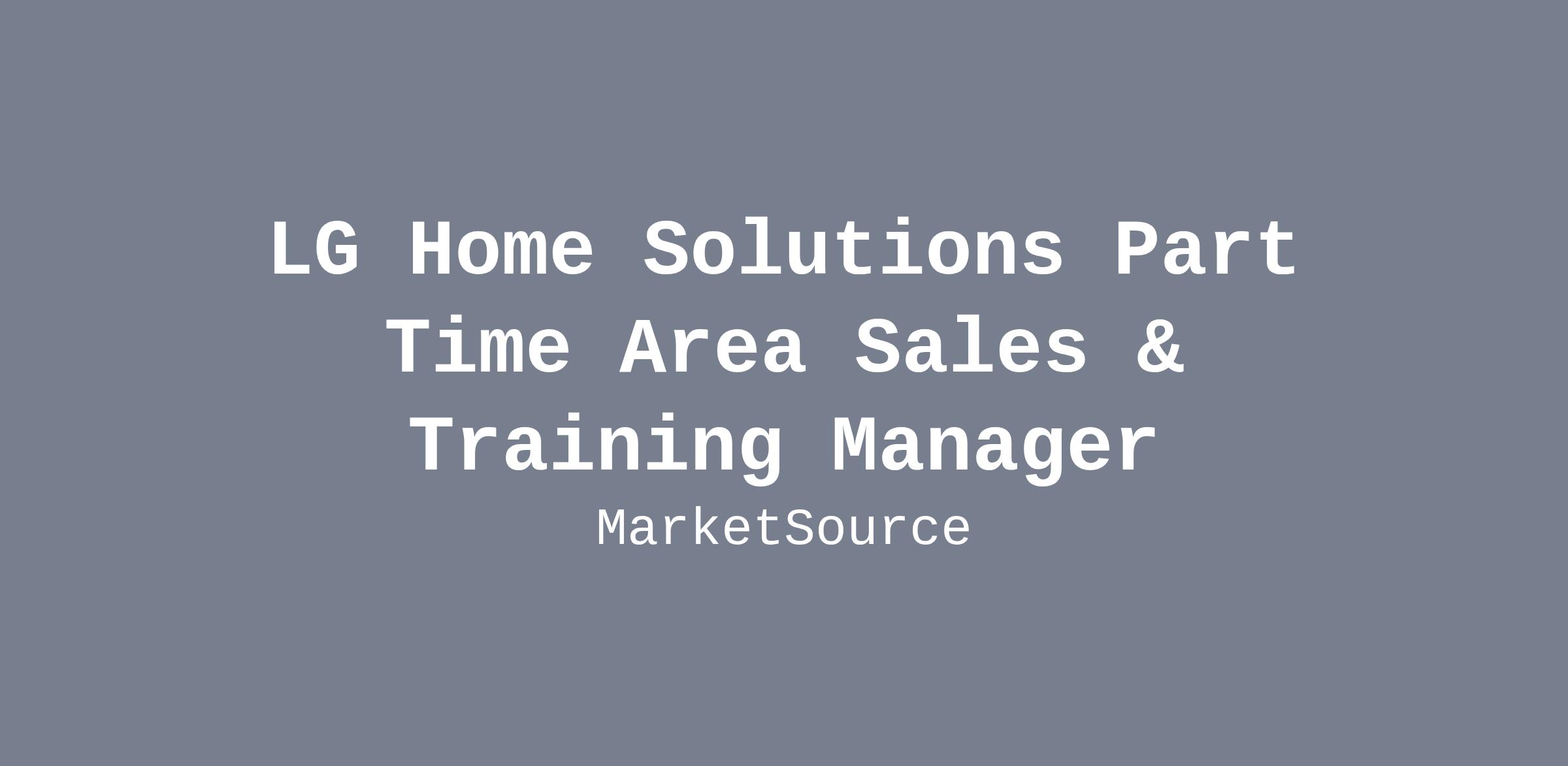 LG Home Solutions Part Time Area Sales & Training Manager