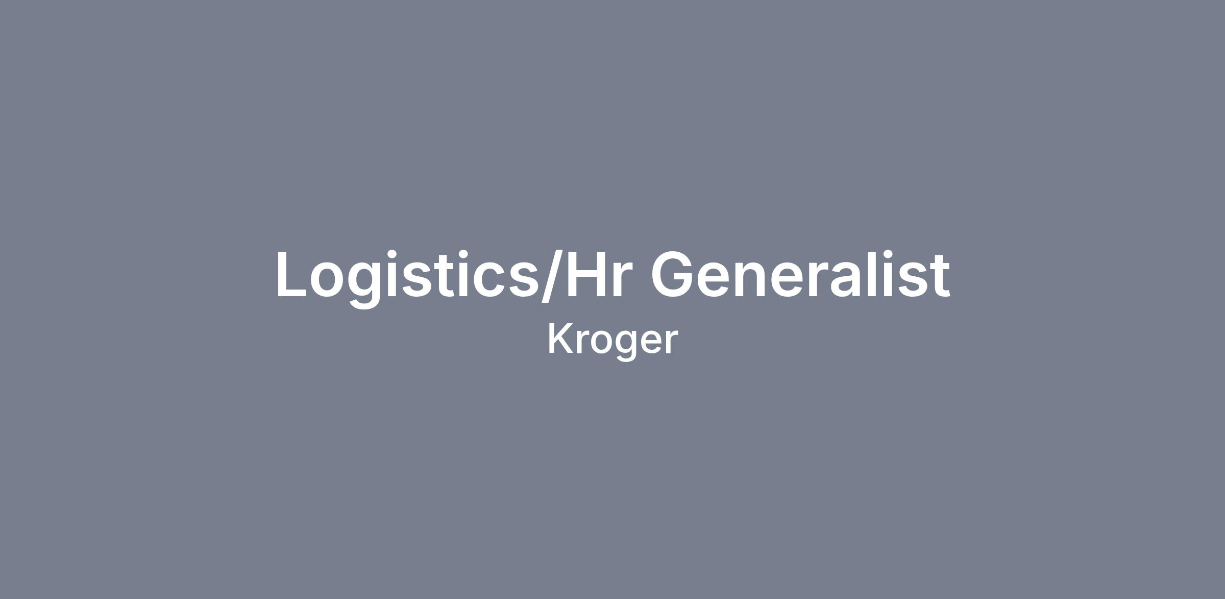 Provide support for Logistics associates regarding employee relations, performance management, recruiting, candidate selection, on-boarding and overall strategic business partnerships. Assist the Total Rewards manager and Human Resources (HR) director of logistics regarding HR projects and administrative functions. Partner with associates/management at regional distribution centers and the Kroger corporate office to facilitate/communicate out about various HR projects, policies, procedures, laws, standards and government regulations. Assist with maintaining compliance with federal/state regulations in regards to employment/safety. Demonstrate the company's core values of respect, honesty, integrity, diversity, inclusion and safety.