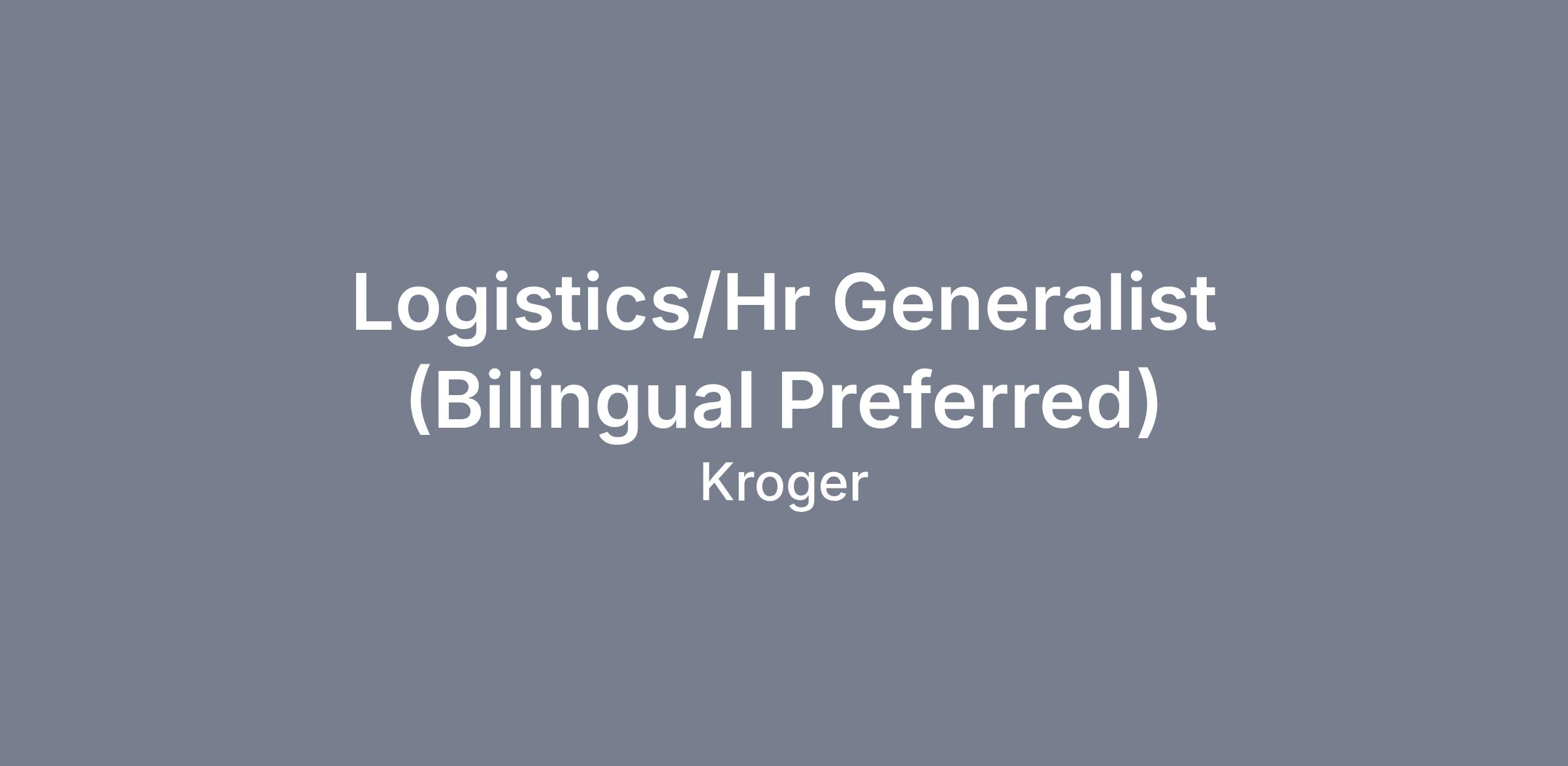 Provide support for Logistics associates regarding employee relations, performance management, recruiting, candidate selection, on-boarding and overall strategic business partnerships. Assist the Total Rewards manager and Human Resources (HR) director of logistics regarding HR projects and administrative functions. Partner with associates/management at regional distribution centers and the Kroger corporate office to facilitate/communicate out about various HR projects, policies, procedures, laws, standards and government regulations. Assist with maintaining compliance with federal/state regulations in regards to employment/safety. Demonstrate the company's core values of respect, honesty, integrity, diversity, inclusion and safety.