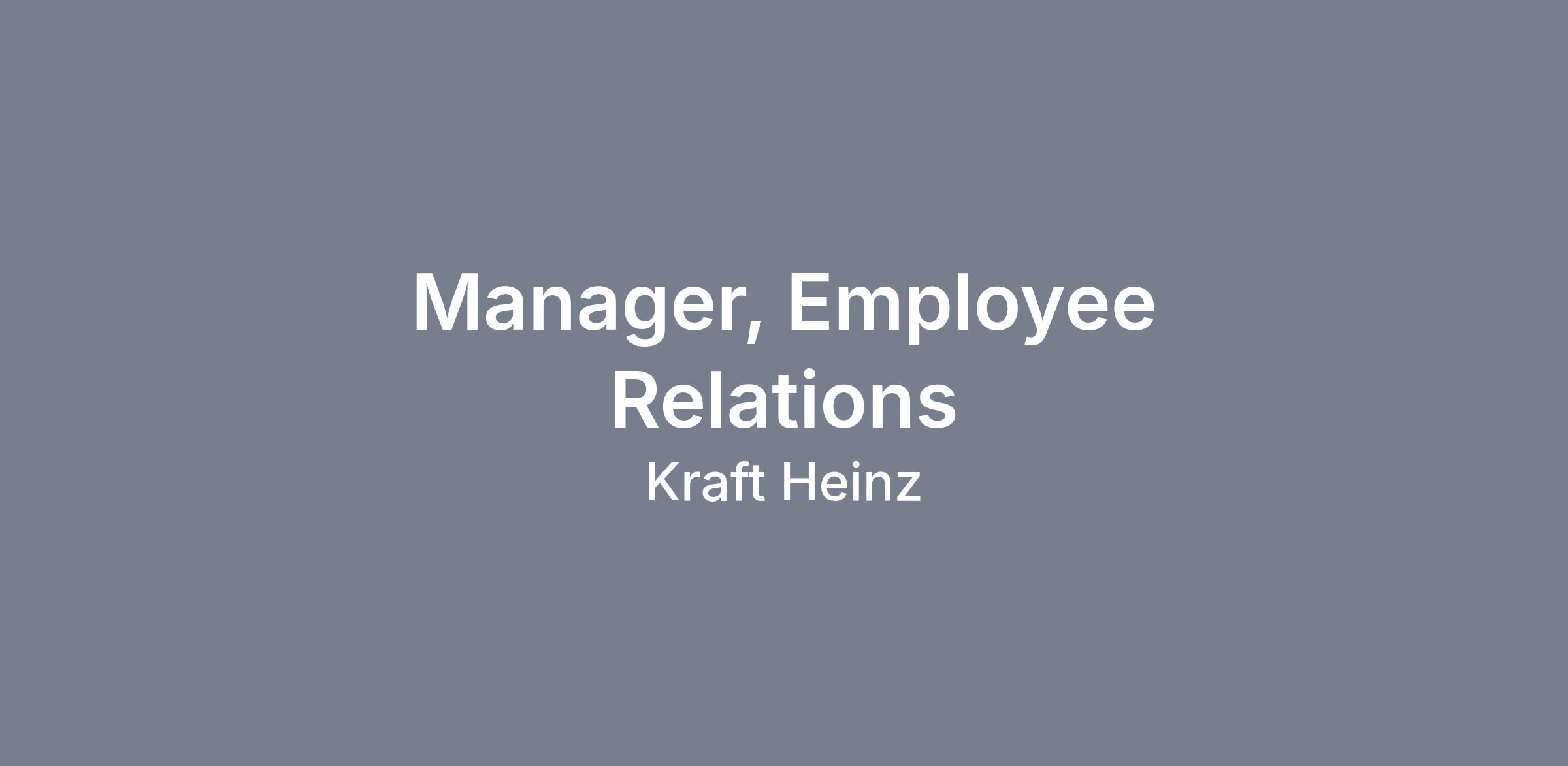 The Manager, Employee Relations partners closely with HRBPs, managers, Legal, and Compliance to investigate concerns, document findings, recommend outcomes, and support risk-aware decisions that strengthen employee experience and business outcomes. Serve as a trusted advisor and subject matter expert on employee relations (ER) for Kraft Heinz’s (WHQ) North America workforce. This role will lead employee relations processes like investigations and Performance Improvement Plans (PIP). A component will include analyzing ER data and finding opportunities to evolve operations or policies and sharing those themes with key stakeholders. This role will ensure compliance with company standards and applicable laws.