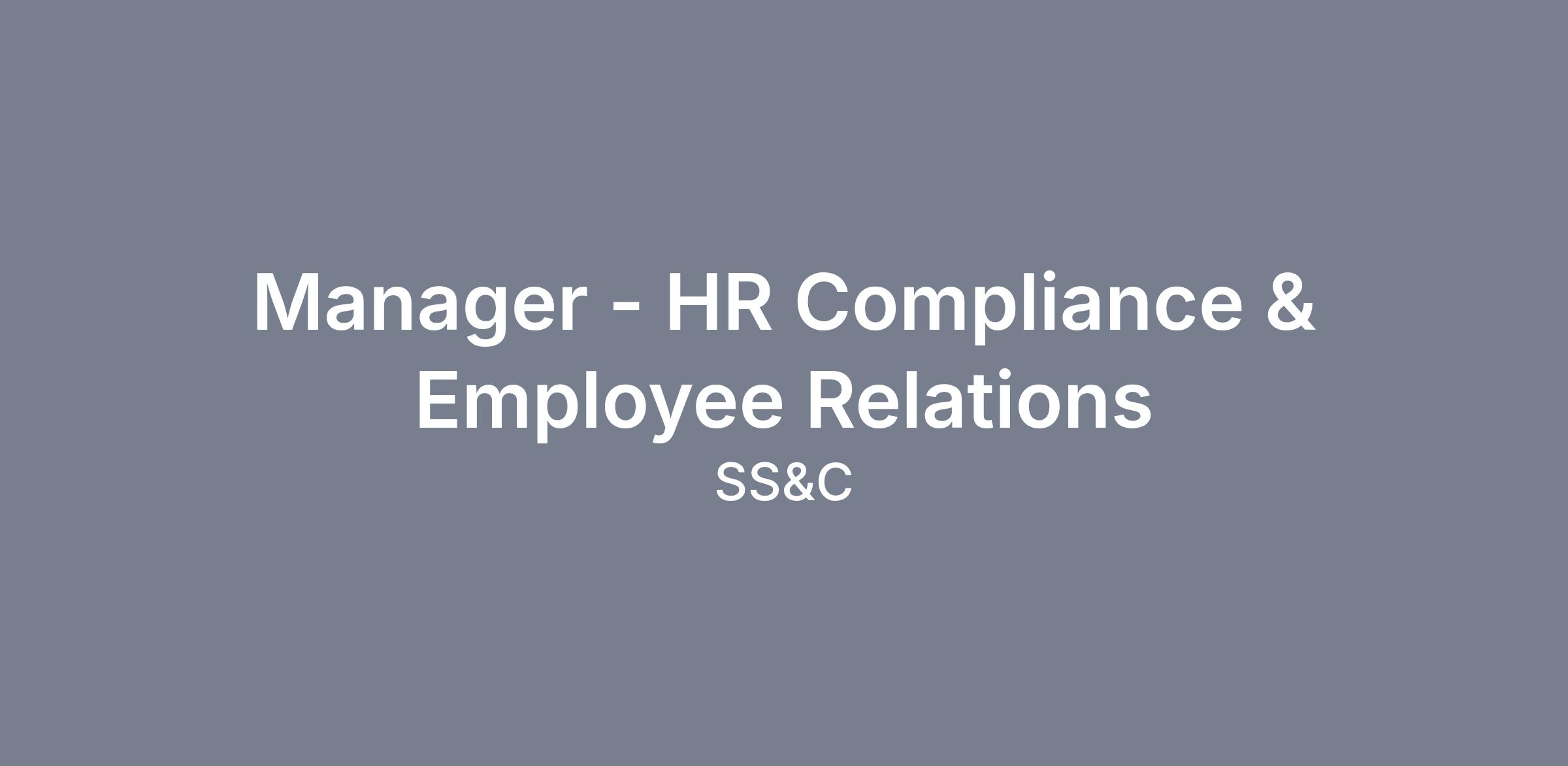 Manager, HR Compliance & Employee Relations