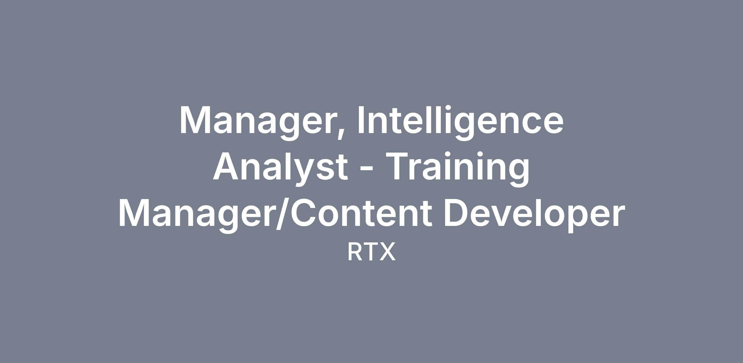 Raytheon - Air and Space Defense Systems (ASDS) is seeking a Manager, Intelligence Analyst - Training Manager/Content Creator to join a growing team within the Space Intelligence, Surveillance and Reconnaissance (S-ISR) Sub-Strategic Business Unit (SSBU).