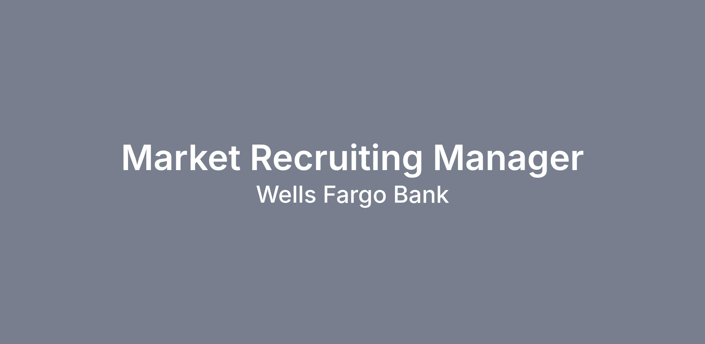 Wells Fargo Financial Advisors is seeking a Market Recruiting Manager. The candidate will recruit financial advisors within their region. In this role, the goal is to develop and maintain a strong pipeline of financial advisor candidates and to provide insight on industry trends, competitive intelligence, product platforms, deals, and compensation plans.