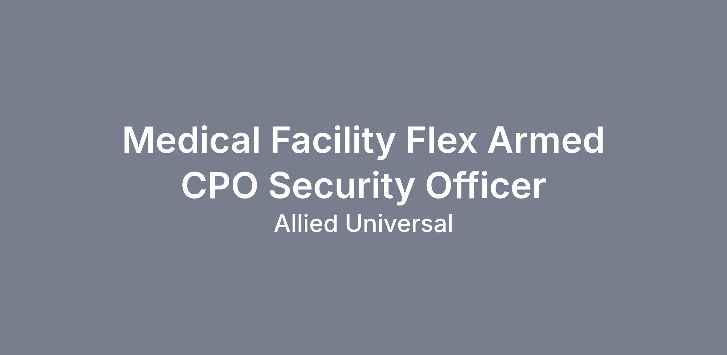 As a Medical Facility Flex Armed CPO Security Officer, you will serve and safeguard clients in a range of industries such as Commercial Real Estate, Healthcare, Education, Government and more.