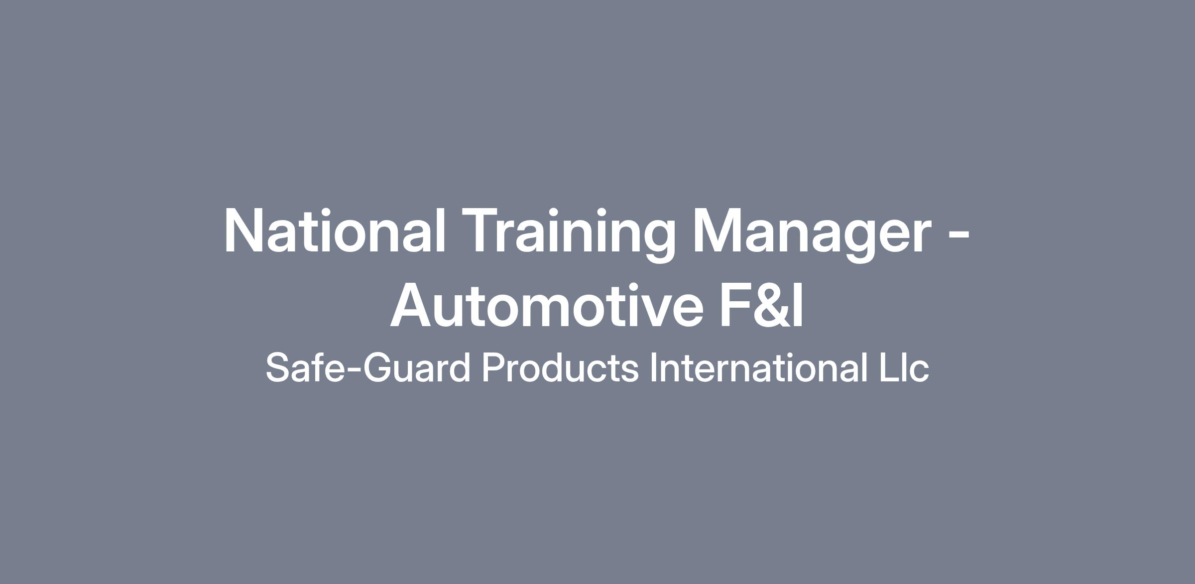 The National Training Manager supports Agents, OEM, Consolidator and other related dealership personnel and field staff by providing Safe-Guard and branded F&I Training.