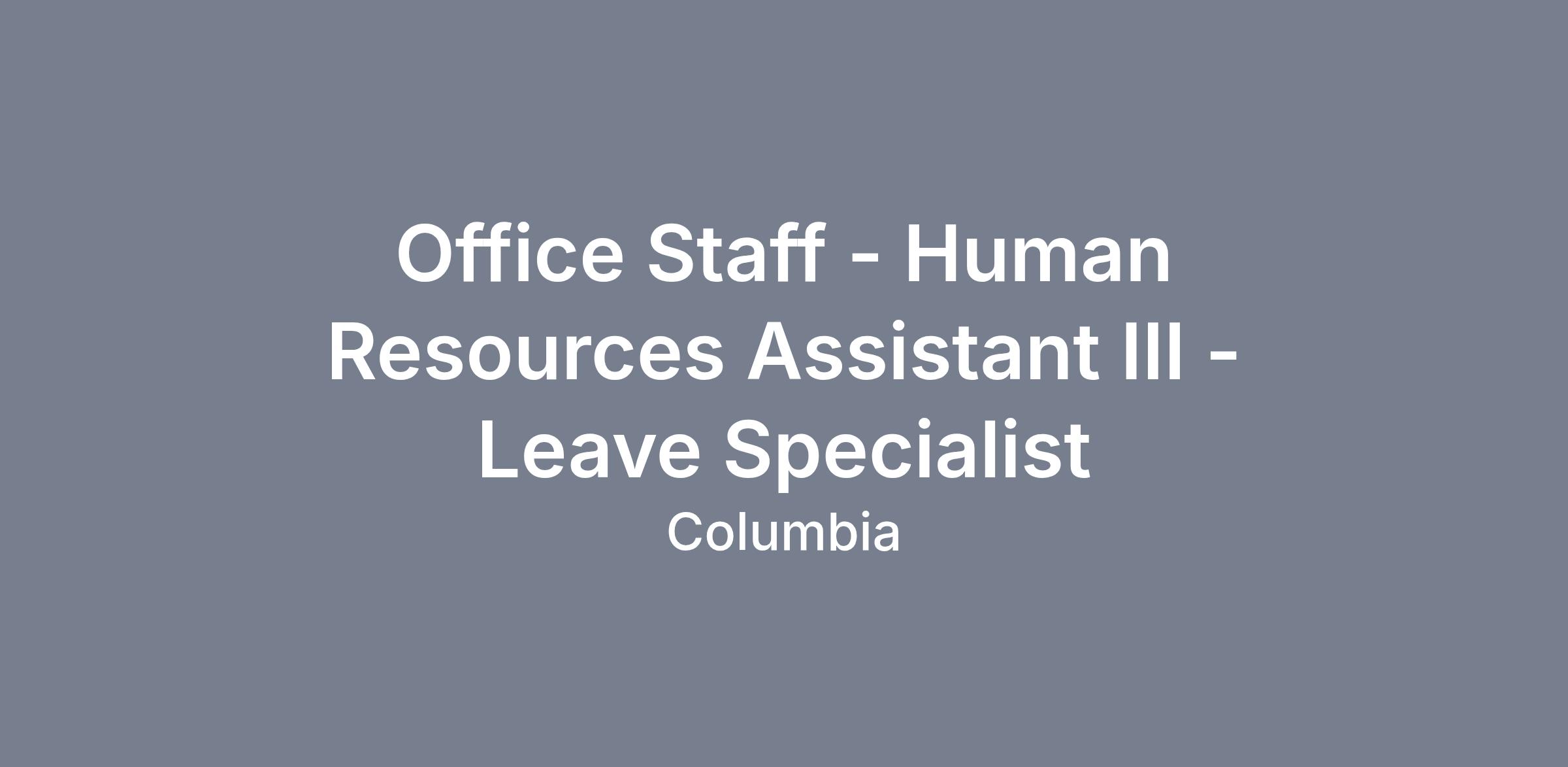 Human Resources Assistant IIII - Leave Specialist |