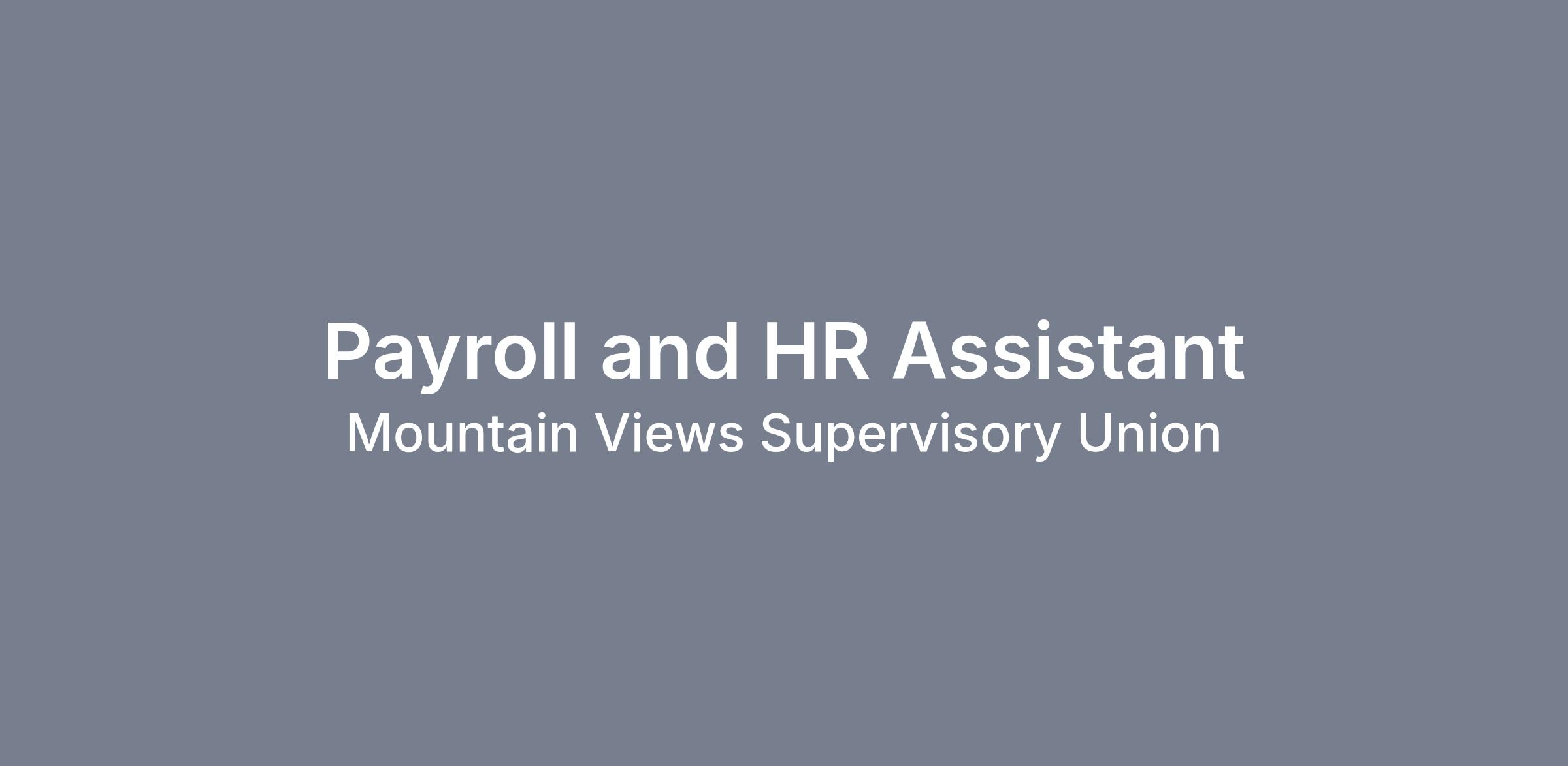 Mountain Views Supervisory Union is seeking a detail-oriented and highly organized Payroll and HR Assistant to join our Central Office team. This position plays a key role in ensuring accurate payroll processing while also providing administrative support to Human Resources functions.