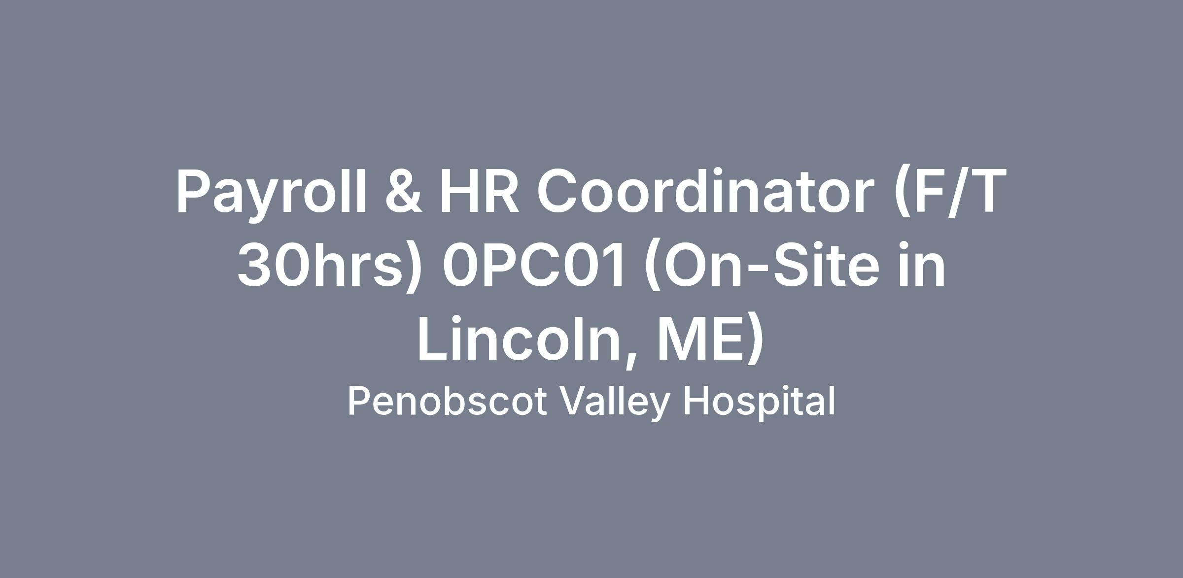 The Payroll & HR Coordinator provides a crucial role to coordinate and process payroll for employees at Penobscot Valley Hospital. They will ensure that employees are hired and terminated correctly in the payroll software and that the bi-weekly payroll is processed timely and accurately. This position serves as a resource to department managers for approving timecards accurately according to the department’s schedule.